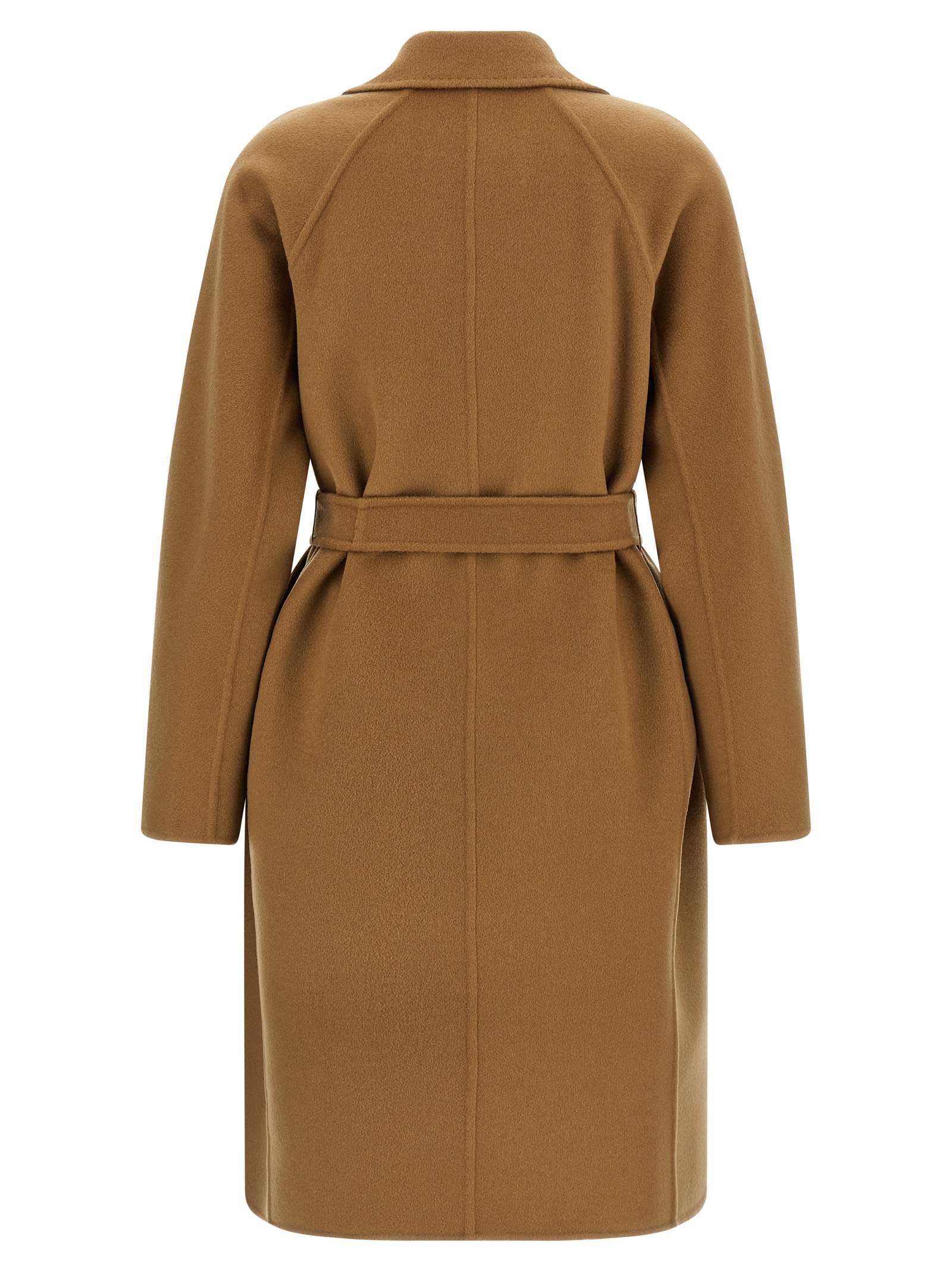 ‘mxmaceri’ midi coat in double drap of hand-stitched pure cashmere finished with tailored dot, Dressing gown style, Lapel collar, Raglan-cut kimono sleeves on the back, Pockets, Unlined, Removable belt.