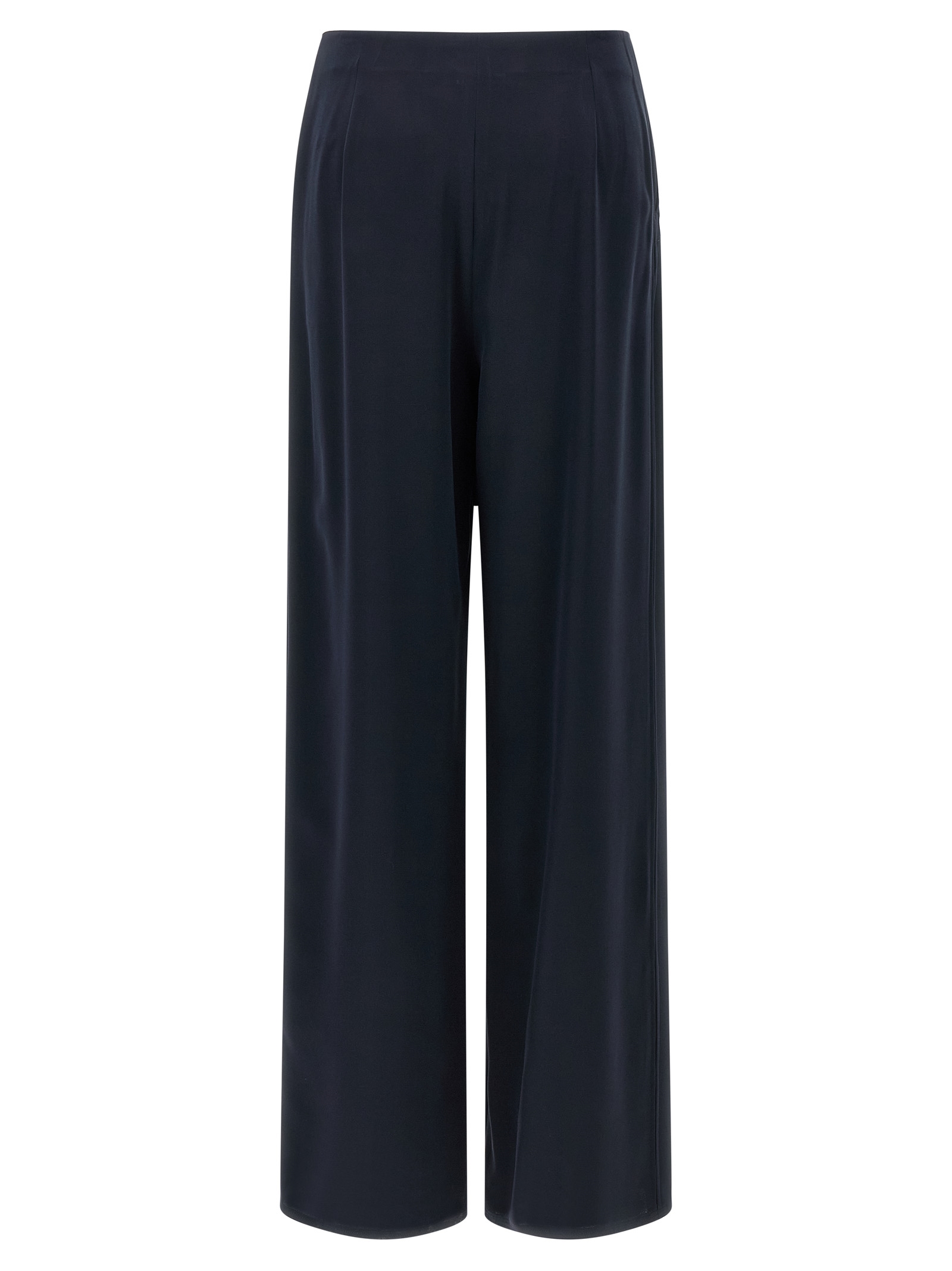 ‘Mxppalude’ silk trousers, wide and straight leg, pleats, internal elastic waistband, side zip closure, pockets.