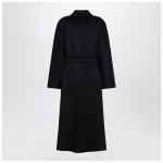 Wrap coat by Max Mara in navy cashmere, featuring a wide fit, peak lapels, long kimono sleeves, matching belt closure, front flap pockets and unlined construction.