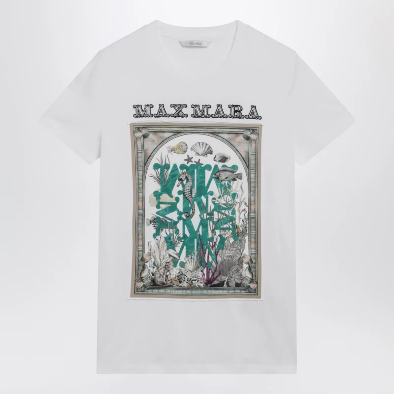 Max Mara Optical white cotton jersey T-shirt with front print