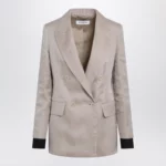 Oversized double-breasted linen canvas blazer with contrasting pure silk organza by Max Mara.