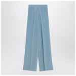 Max Mara Pianoforte trousers in sky blue silk crêpe de chine, characterized by wide leg, front waist pleats, two side welt pockets, and front closure with zip and hook.