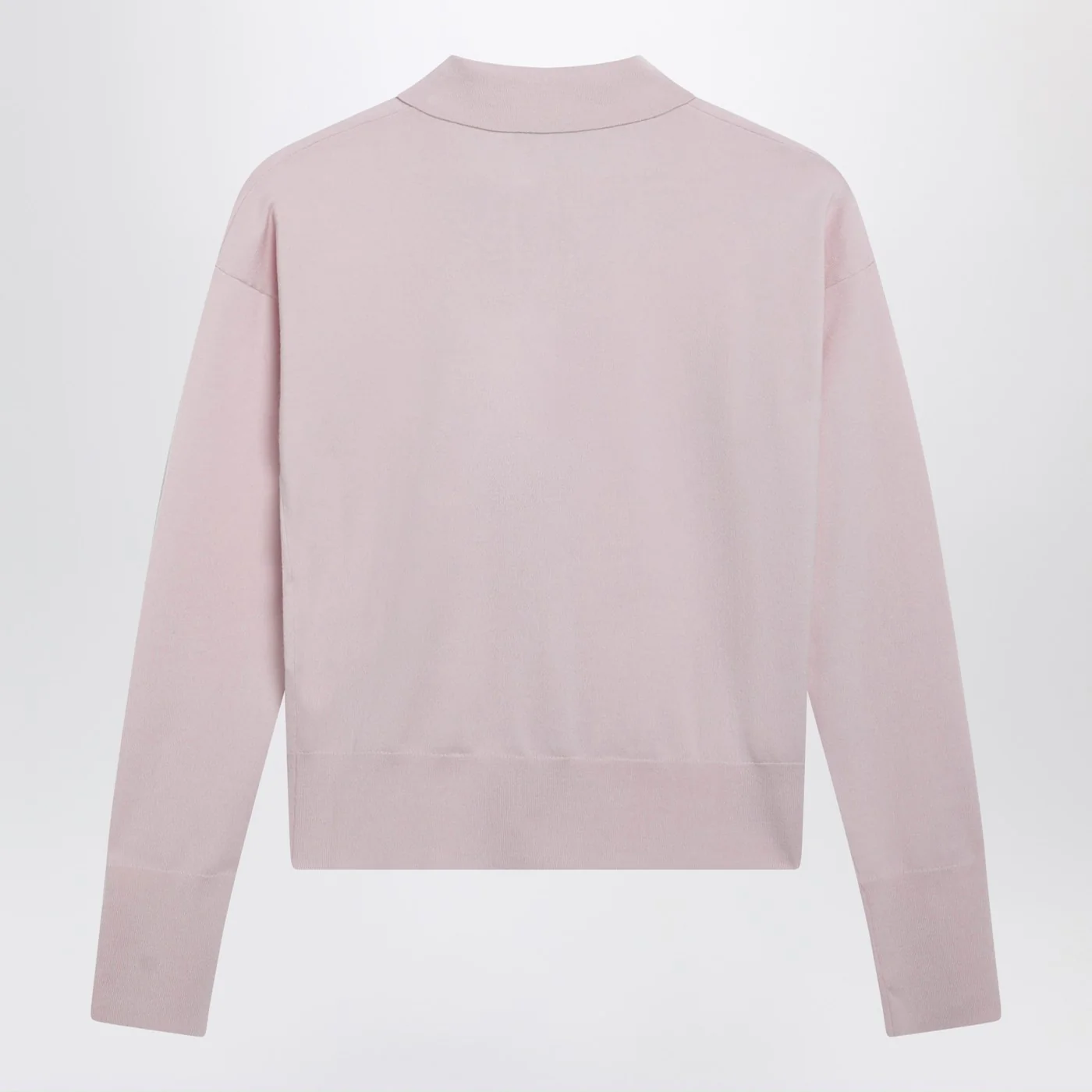 Cardigan by Max Mara in light pink wool blend Slightly cropped fit Slim line Shirt collar Long sleeves with dropped shoulders Front button closure Ribbed trims. Size and Fit – Model wears size S Model measurements: Height: 182 cm Chest: 79 cm Waist: 62 cm Hips: 90 cm