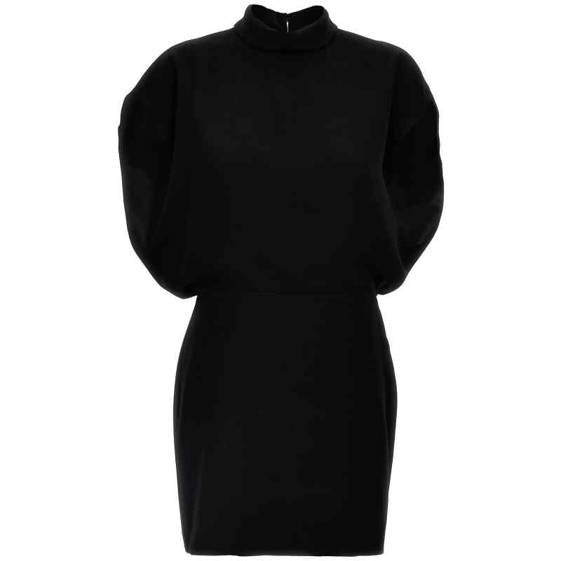‘querce’ dress in fluid cady, Corolla collar, Back cut out, Sleeveless, Tight sheath skirt. Size and Fit – true to size fit