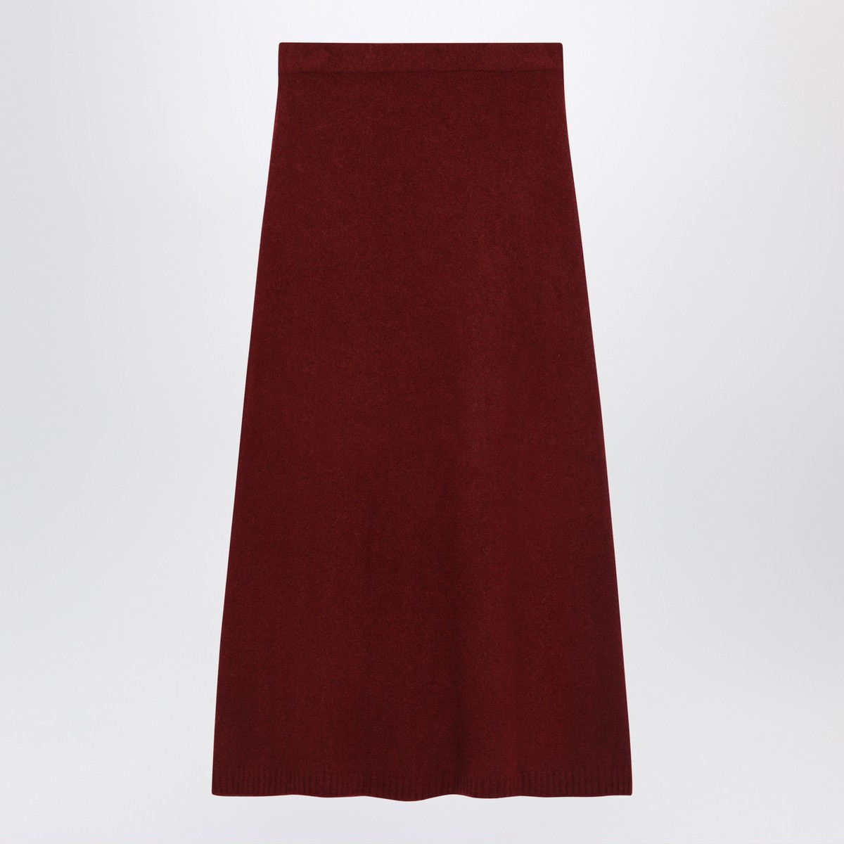 Max Mara long skirt in raspberry stretch cashmere blend yarn, featuring a slightly flared silhouette, elasticated waist, ribbed hem and unlined design.