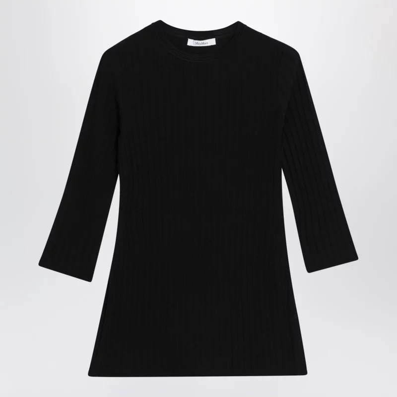 Max Mara Ribbed crewneck sweater in crêpe viscose, black