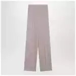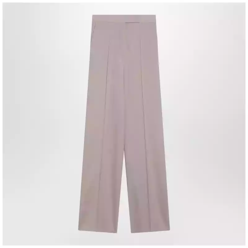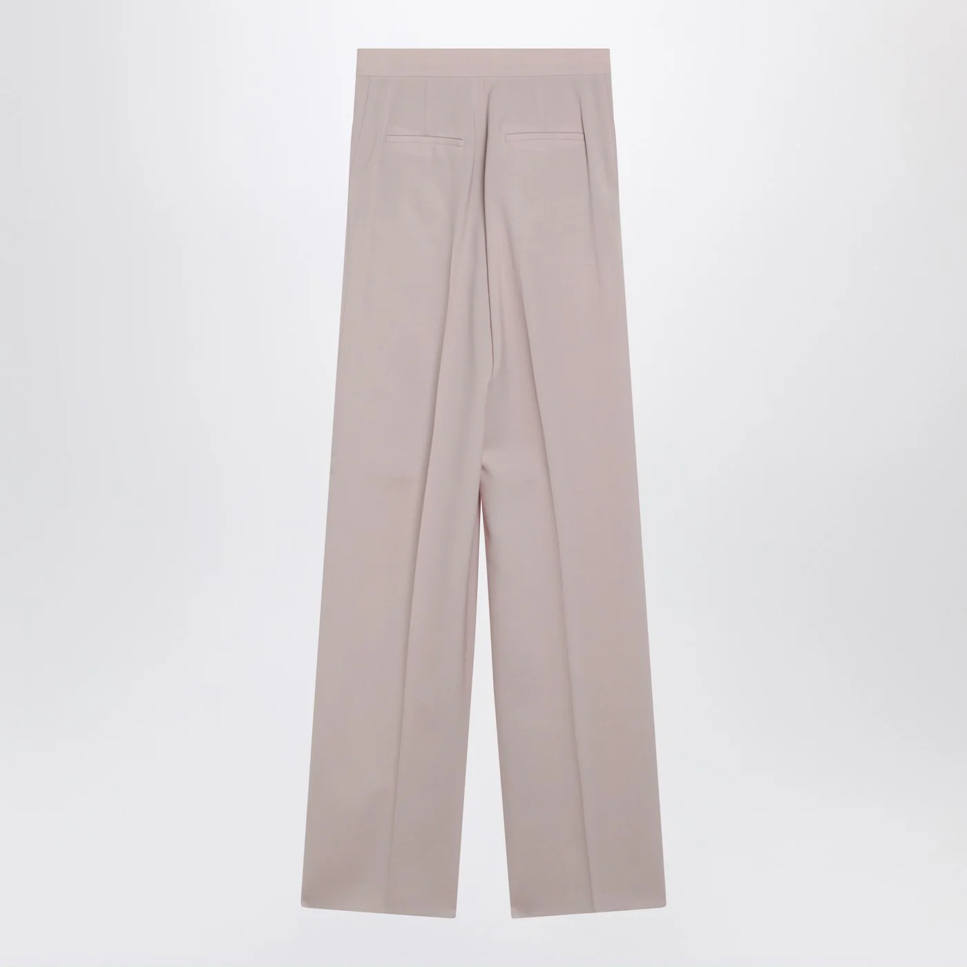 Trousers by Max Mara in virgin wool mohair and silk in dusty pink beige Wide leg Pressed front crease Two side pockets Two rear welt pockets Front closure. Size and Fit – Model wears size 40 IT Model measurements: Height: 181 cm Chest: 81 cm Waist: 62 cm Hips: 89 cm