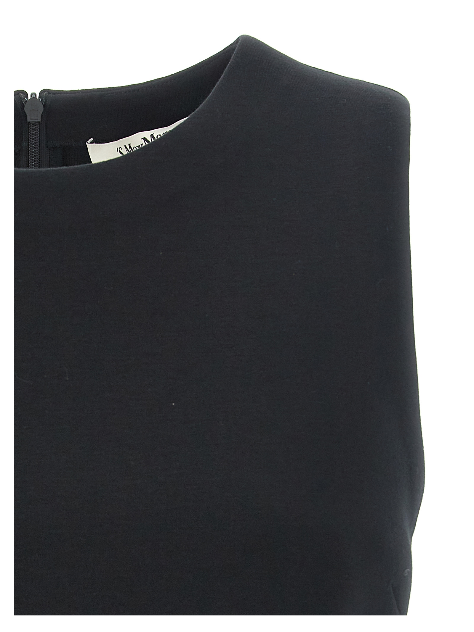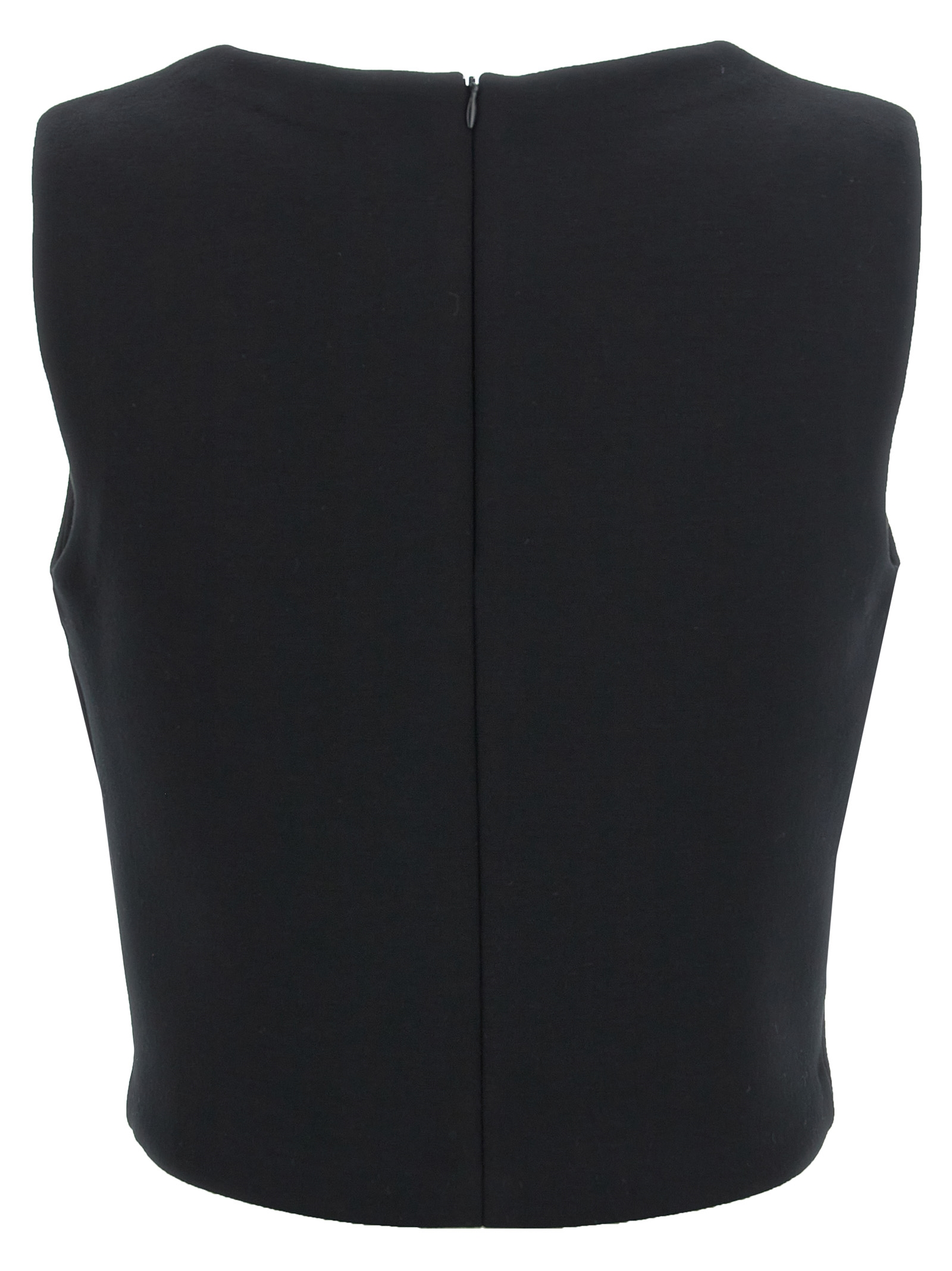 ‘Dazzy’ viscose scuba jersey cropped top, round neckline, back zip closure.