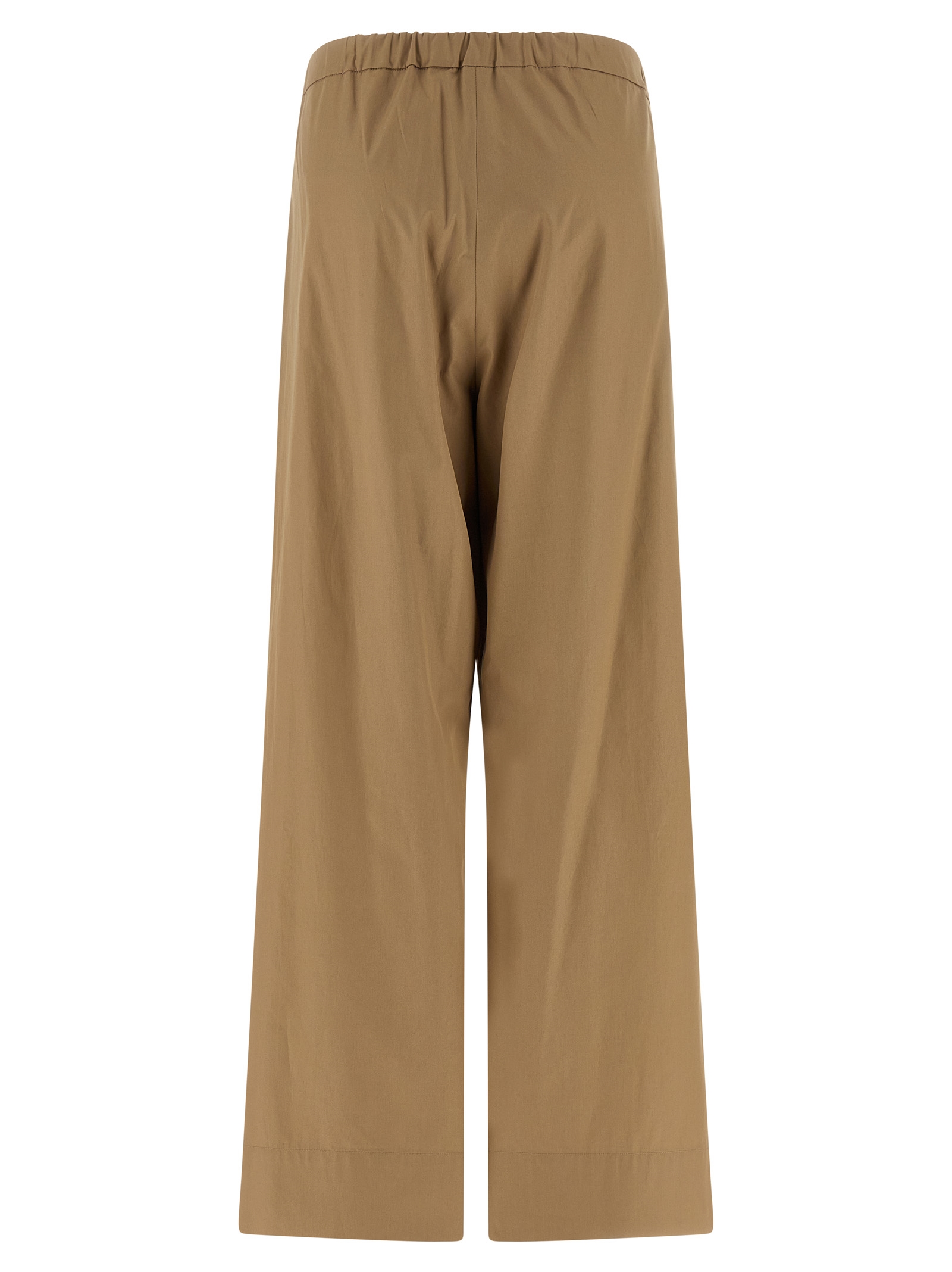 ‘SmmArgento’ cotton poplin pants, wide and straight leg, back elastic with drawstring at the waist, zip hook and front button closure, pockets.