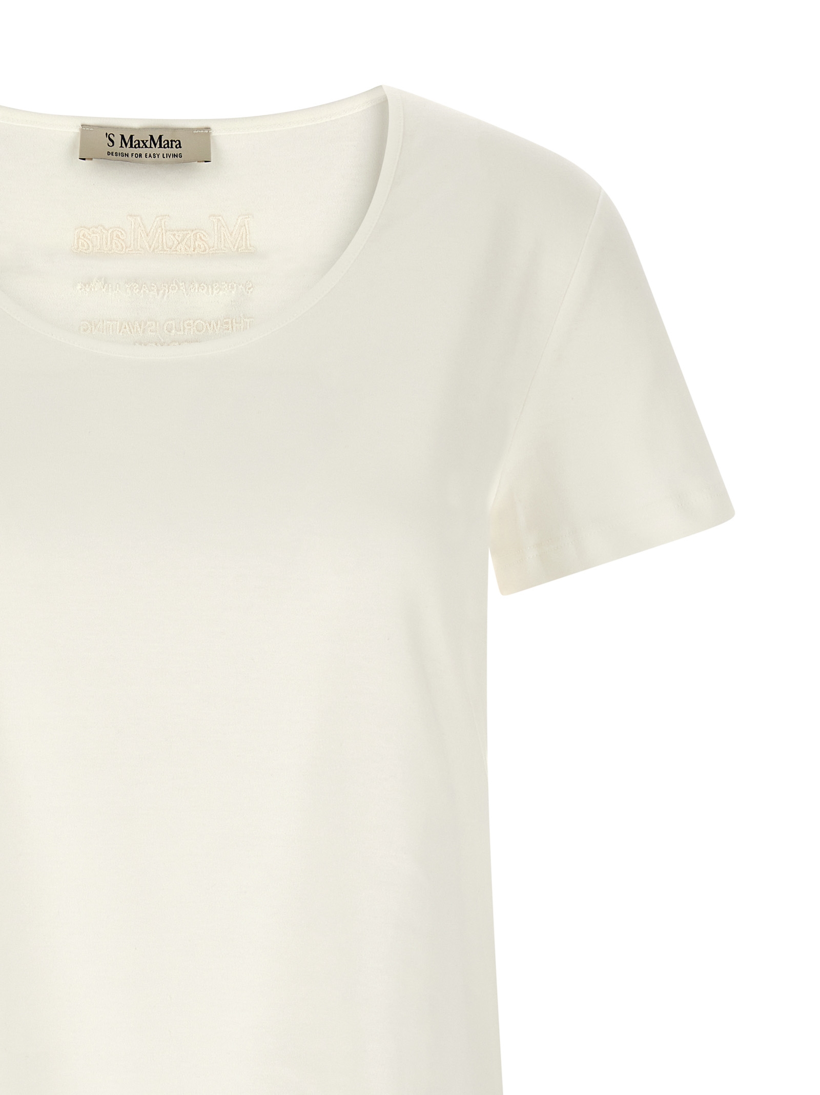 ‘smmdiva’ cotton jersey t-shirt with tone-on-tone embroidery at the back, Wide front neckline, And short sleeves.