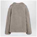 Short double-breasted coat by Max Mara in Teddy fabric made of alpaca and cashmere on a silk base in sand beige, featuring an oversized silhouette, wide notch lapels, long raglan sleeves, button fastening, side pockets and Monogram jacquard lining.