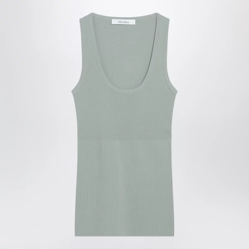 Max Mara Sleeveless ribbed top in sage green technical yarn