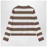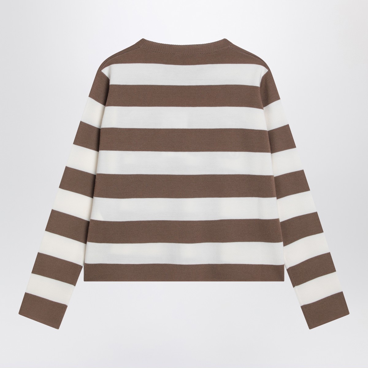 Max Mara striped wool sweater in white and hazelnut color, featuring long sleeves with dropped shoulders, contrasting flocked embroidery 1951 on the front, ribbed crew neck, and boxy fit.