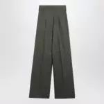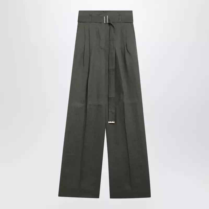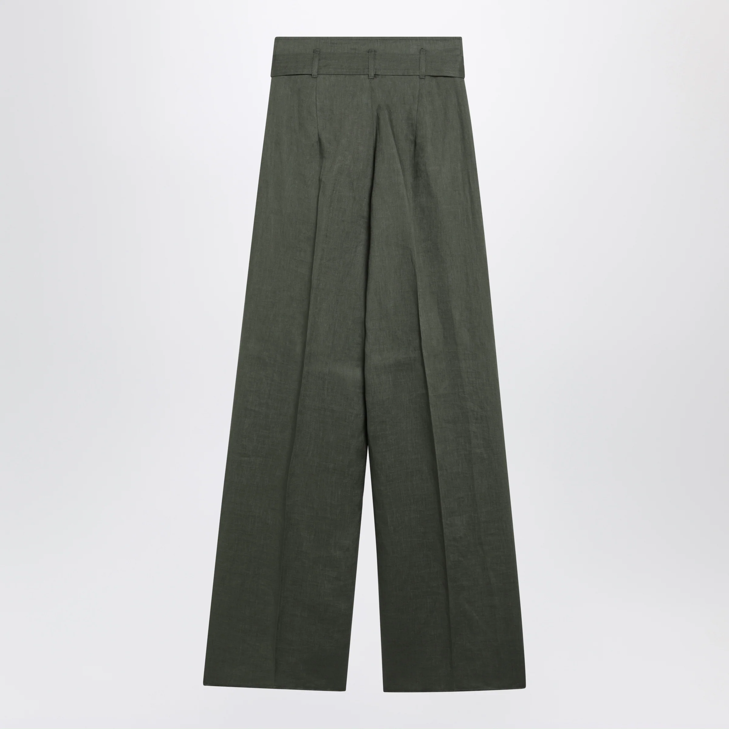 Max Mara Studio High-waist wide-leg washed linen pants, khaki green