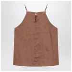 Top by Max Mara Studio in tobacco ramie color, characterized by an American neckline, thin straps, and a button closure at the back.