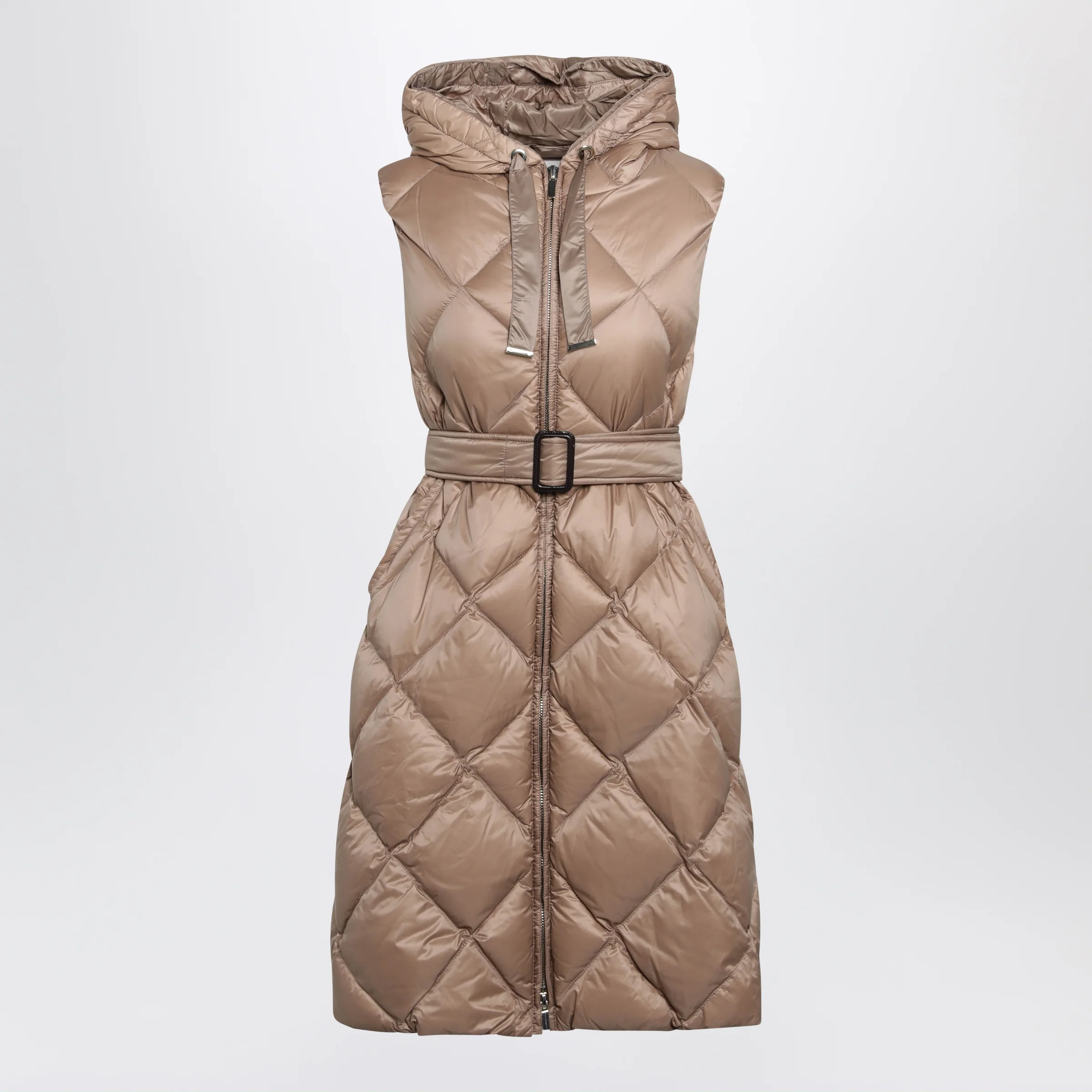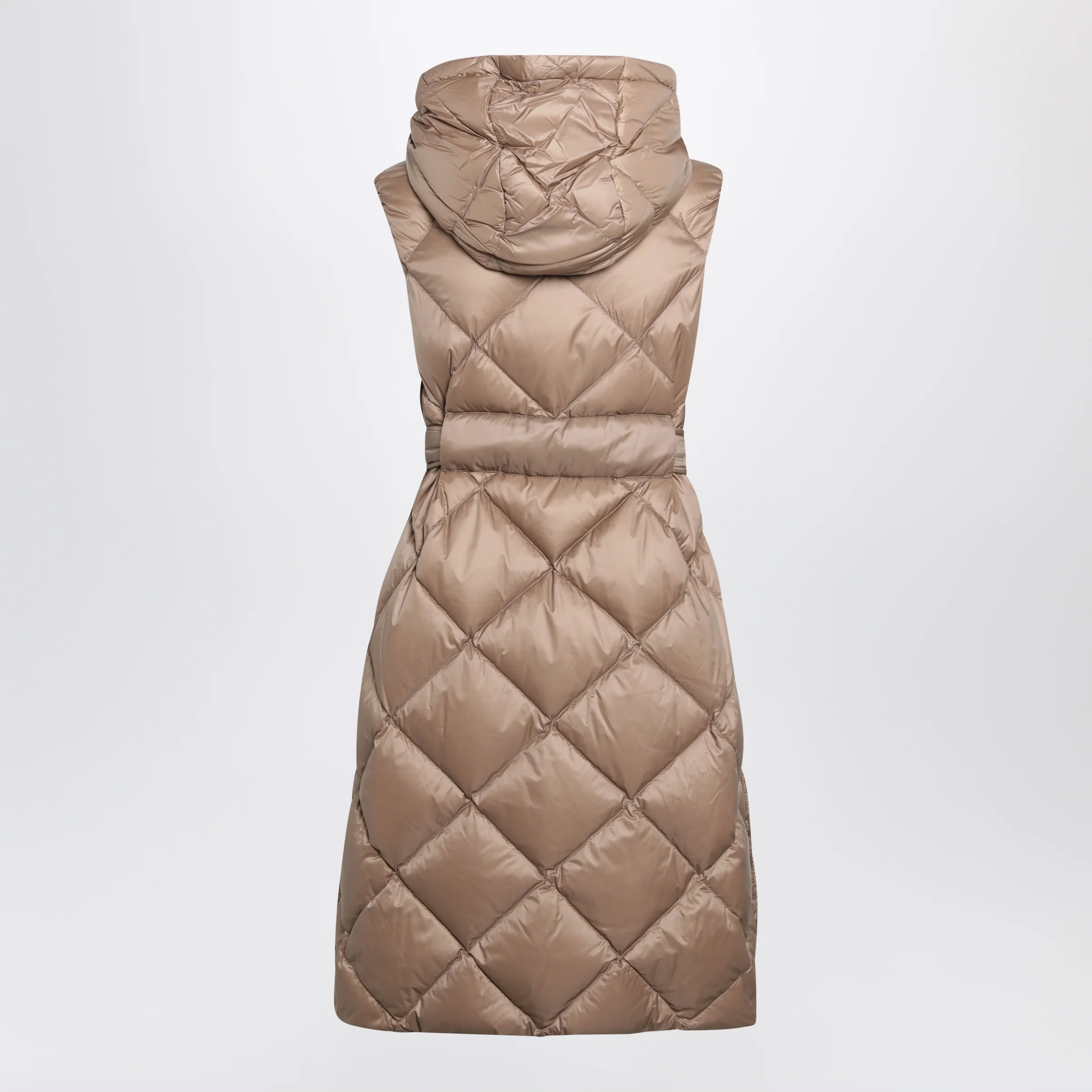 Max Mara The Cube Camel belted sleeveless down jacket