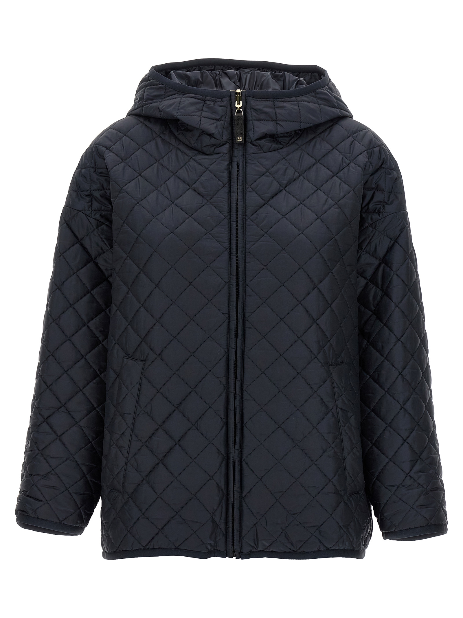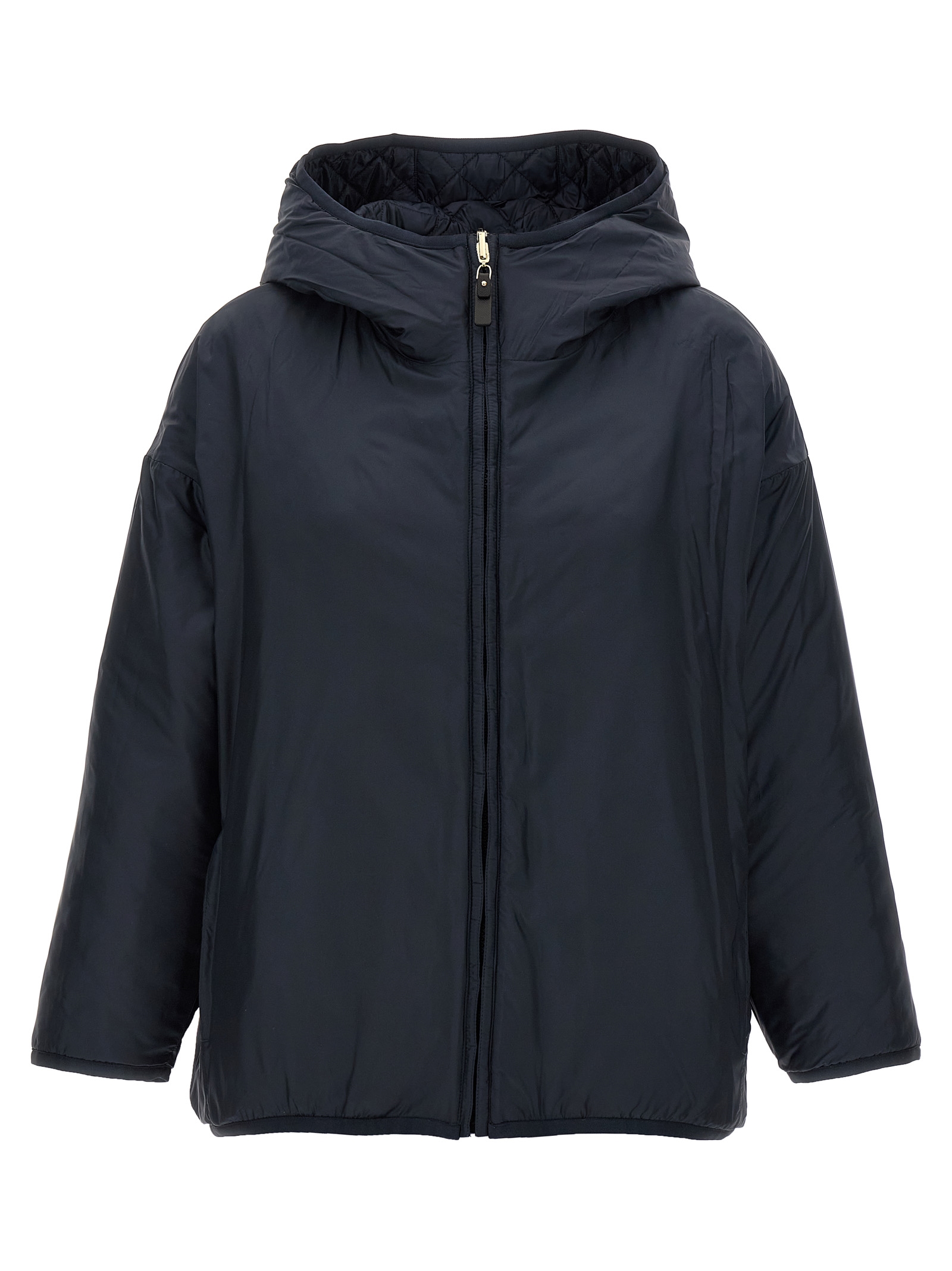 ‘Leo’ reversible jacket in waterproof canvas with Cameluxe quilted diamond-shaped on one side and smooth on the other, hood, front zip closure, pockets, long sleeves with dropped shoulders, slightly asymmetrical hem.