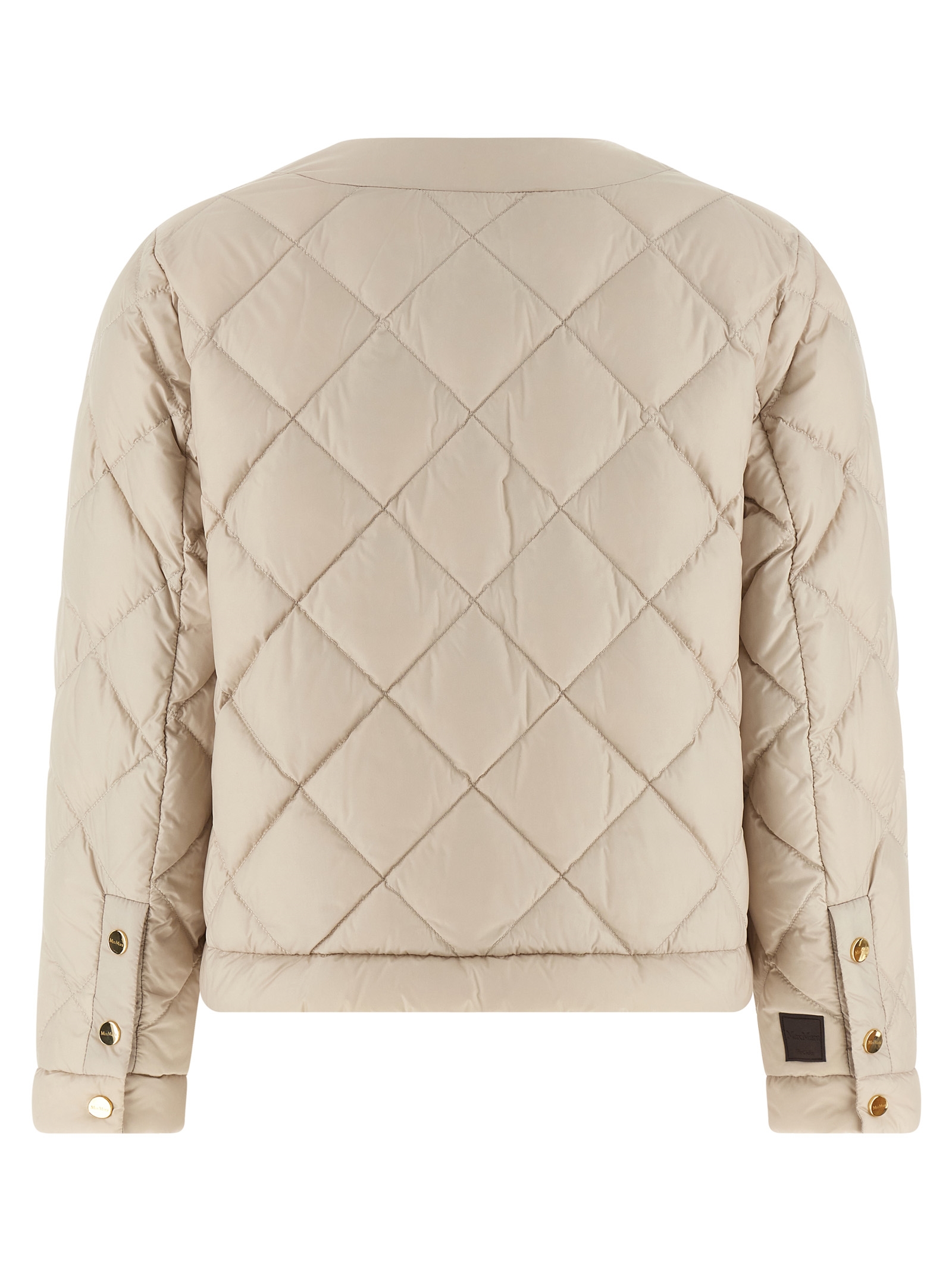 ‘MtcSofta’ jacket in iridescent anti-drip canvas quilted with diamonds and slightly padded with goose down, crew neck, front zip closure, pockets, 3/4 sleeves with slit on the cuffs and snap buttons.