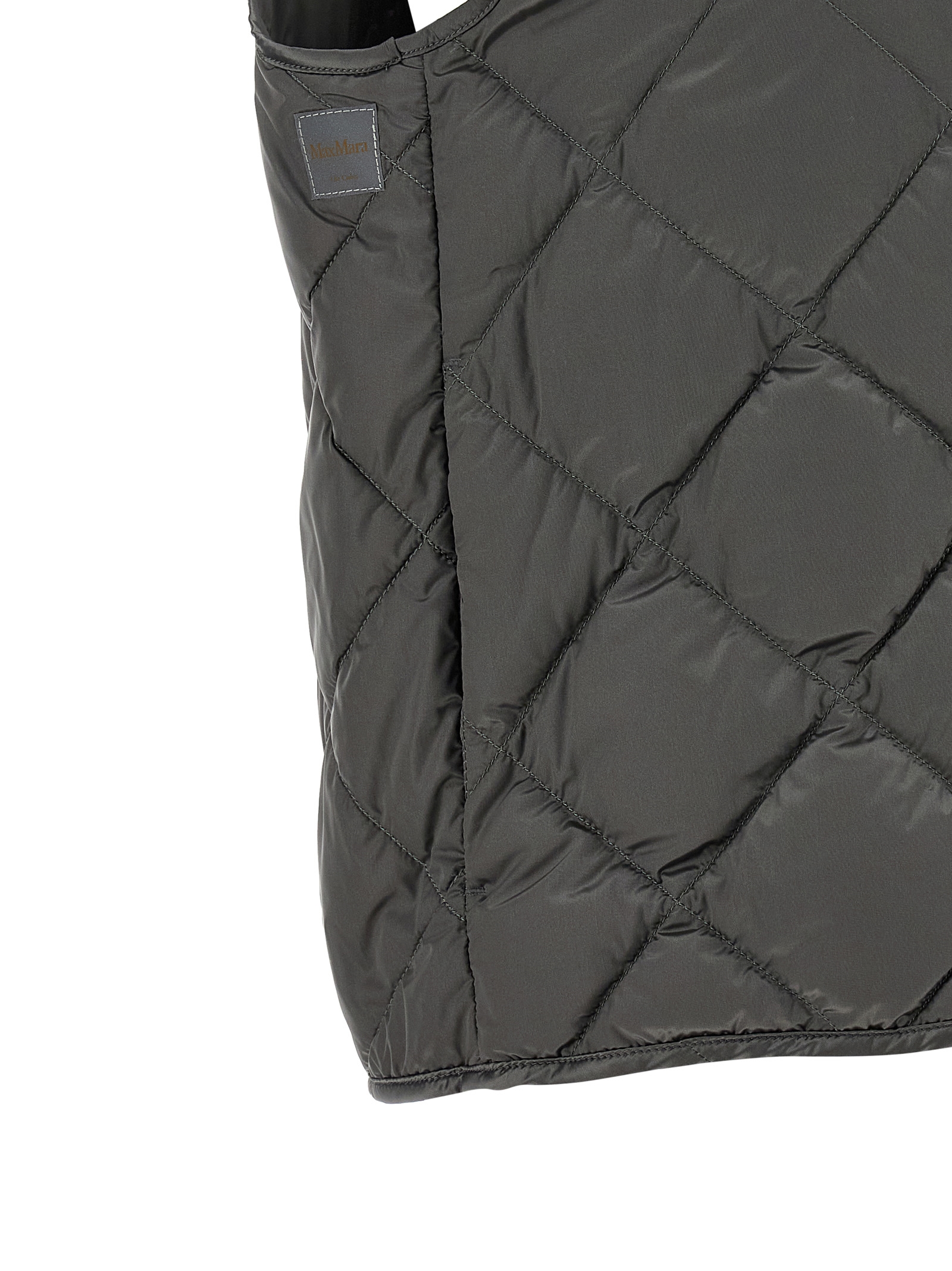 ‘tregic’ vest in iridescent anti-drip canvas quilted with diamonds and slightly padded with goose feathers, Crater neck with drawstring and jacquard logo ribbons, Front zip closure, Pockets.