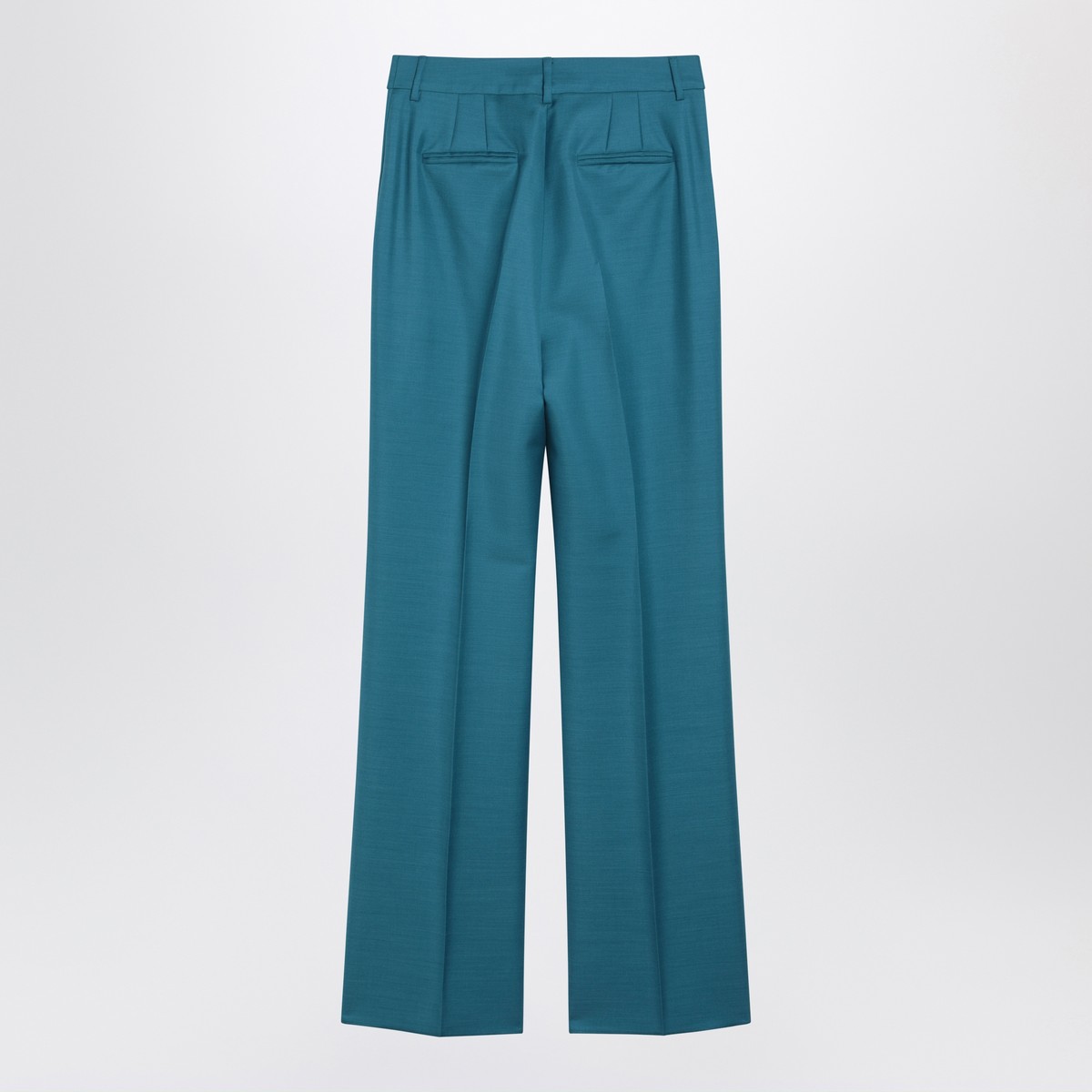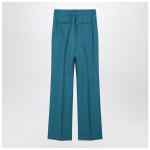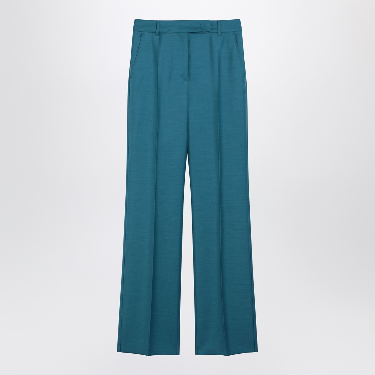 Max Mara turquoise wool and silk-blend trousers, featuring belt loops, two side welt pockets, two rear welt pockets, pressed crease at the front and back and front zip, button and hook closure.