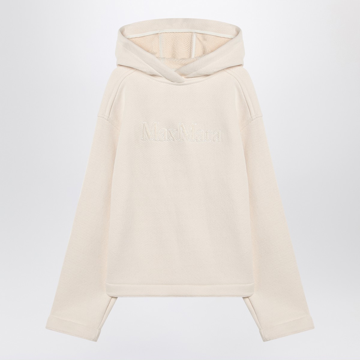 Max Mara white cotton hoodie, featuring long sleeves and tone-on-tone front logo lettering embroidery.