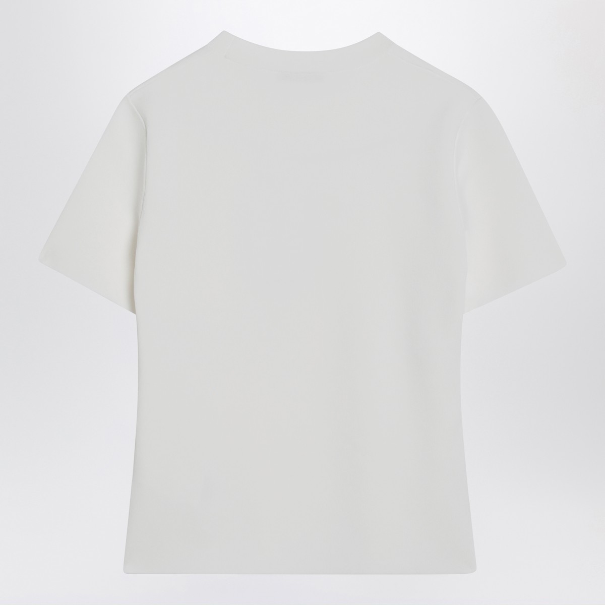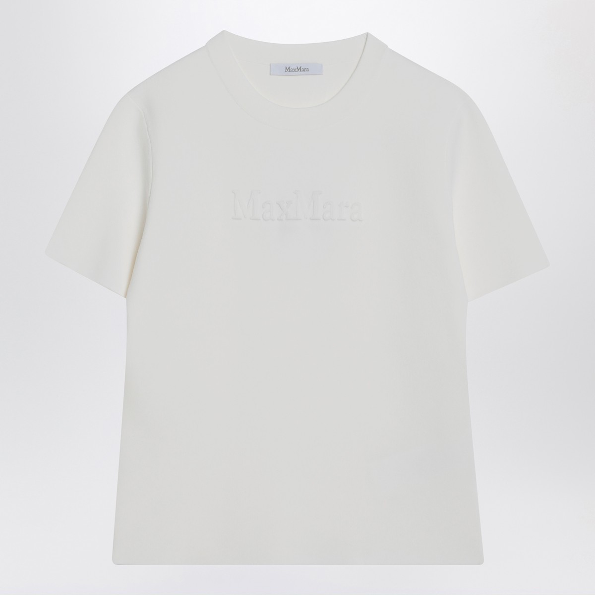 Max Mara T-shirt in white crêpe viscose yarn, featuring short sleeves, tone-on-tone embossed logo lettering on the front, and ribbed crew neck.