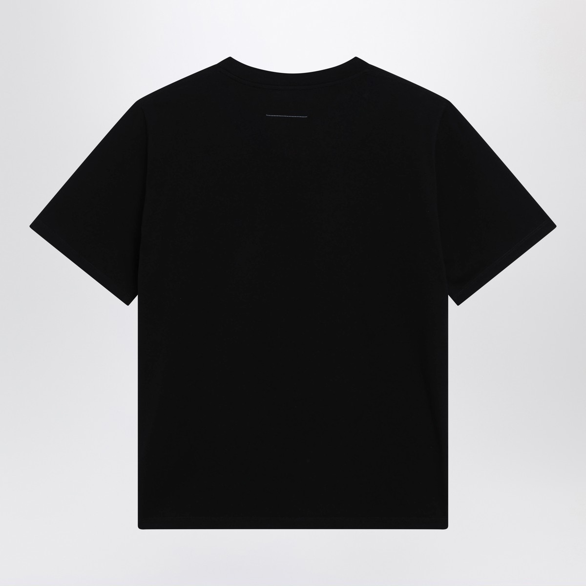 Black cotton T-shirt by MM6 Maison Margiela, featuring short sleeves, ribbed crew neck and contrasting logo print on the front.