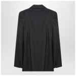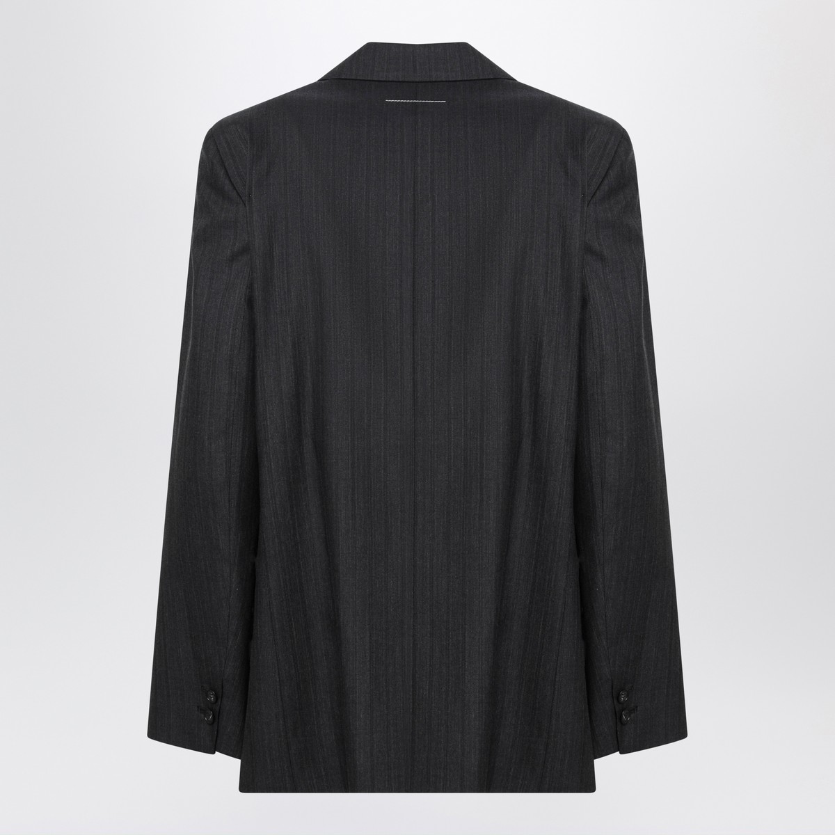 MM6 Maison Margiela single-breasted jacket in black wool and cotton, featuring shirt collar, front button fastening, chest welt pocket, flap front pockets, knotted gloves at the waist and white stitching on the back.