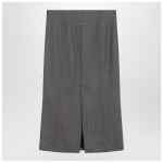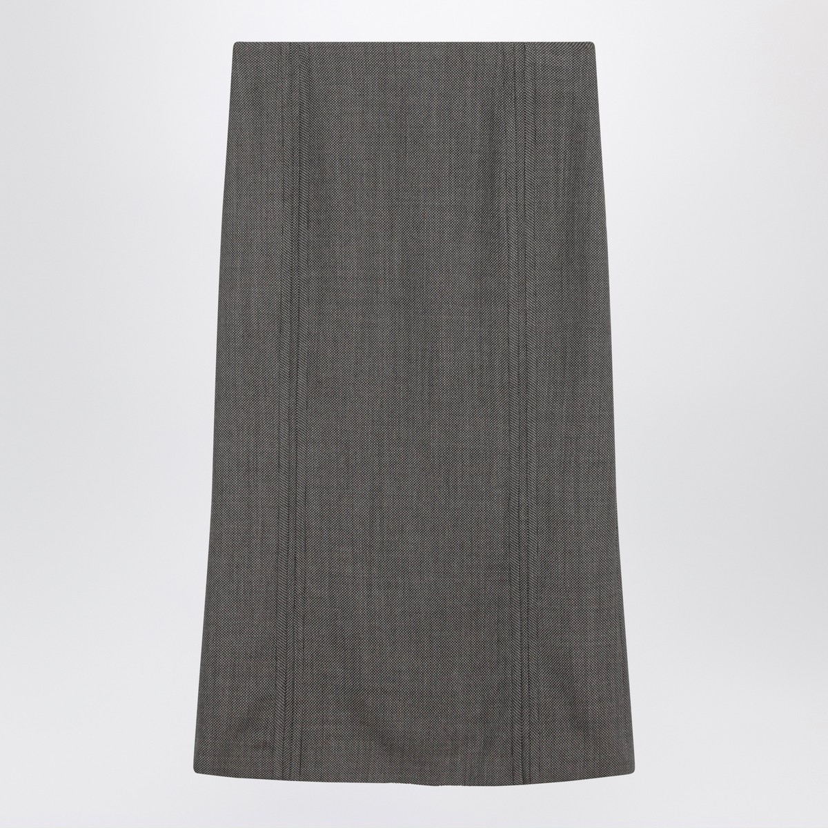Brown and beige wool skirt by MM6 Maison Margiela featuring back slit, high waist, side zip closure, and signature White Stitch Line detail on the back.