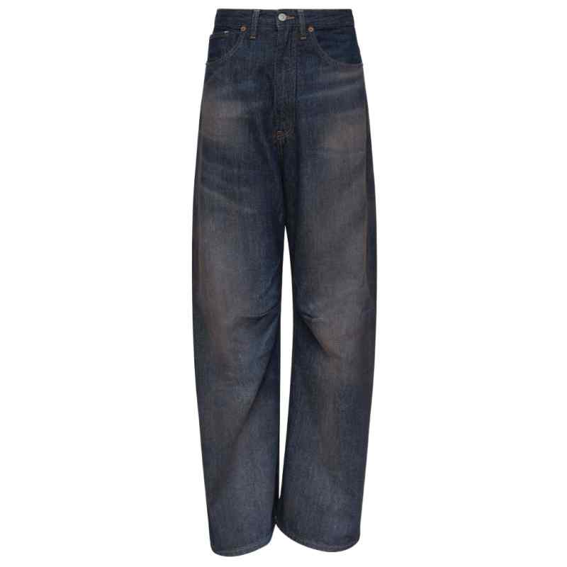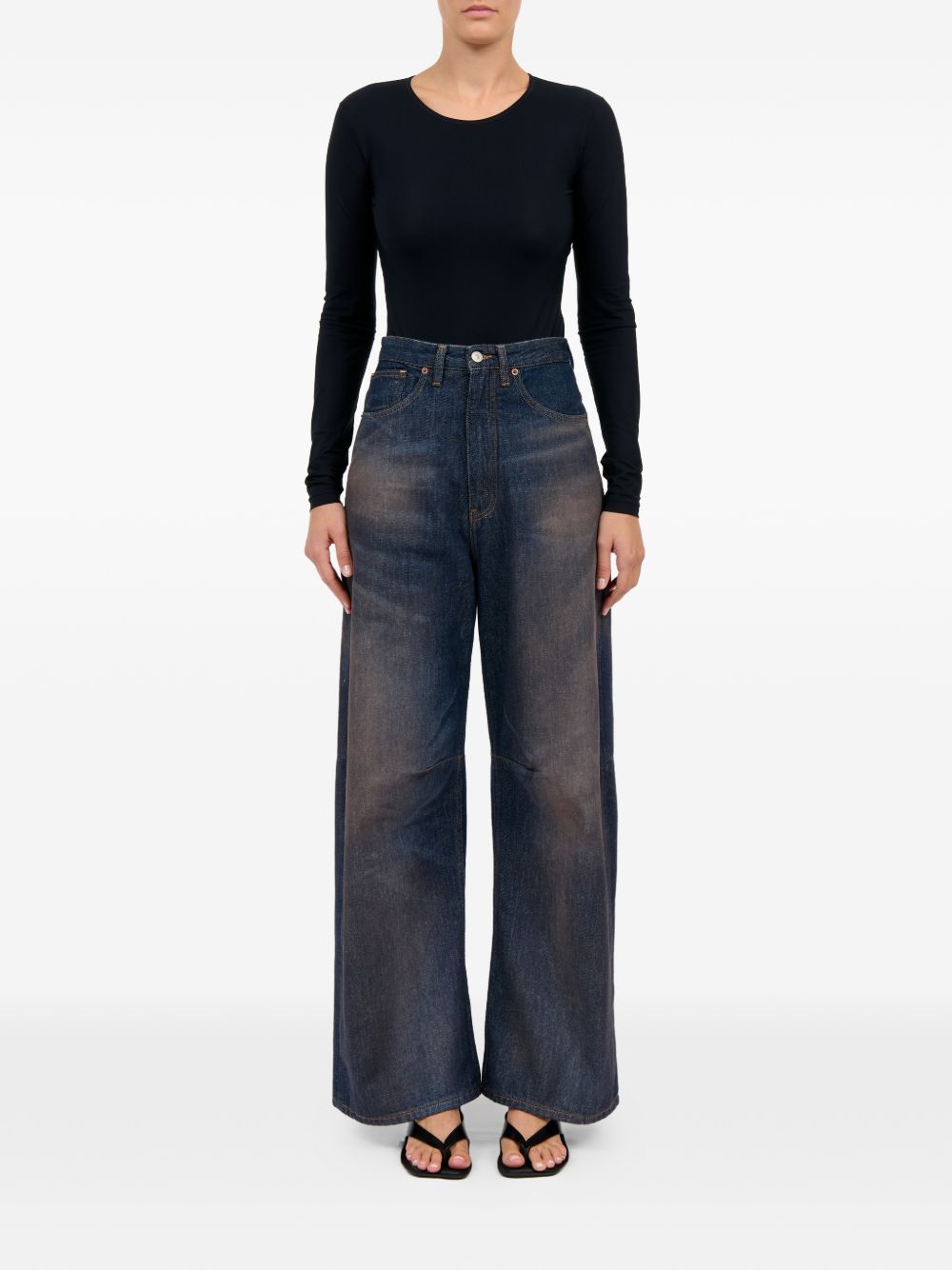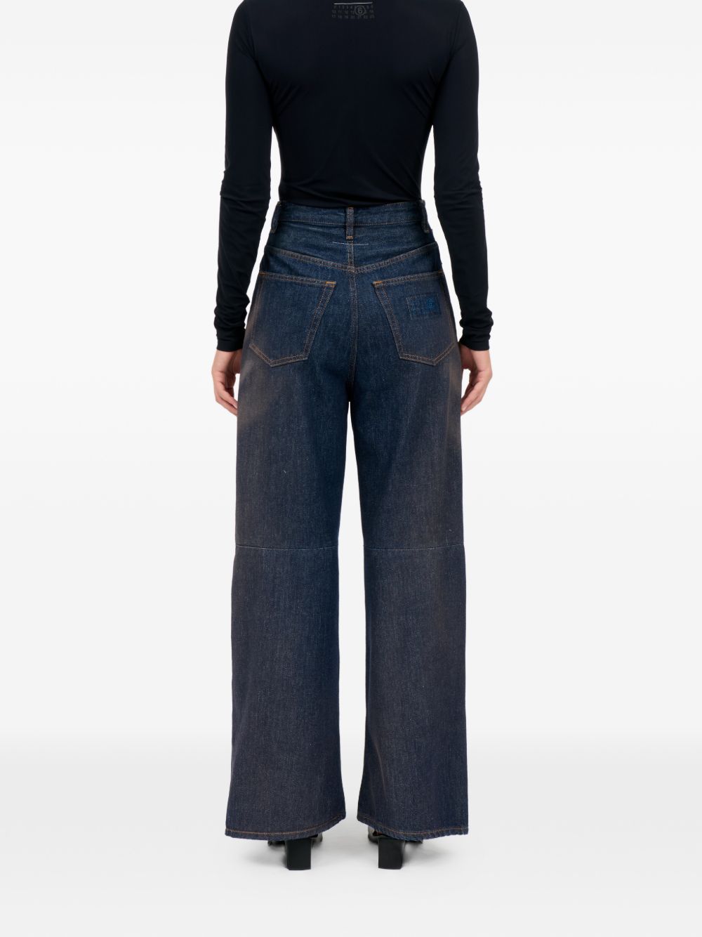 blue cotton faded effect wide leg back logo patch Denim cotton jeans.