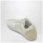 MM6 Maison Margiela sneakers in off-white satin, featuring front lace-up closure, lateral numeric logo label, suede leather heel, and rubber sole.