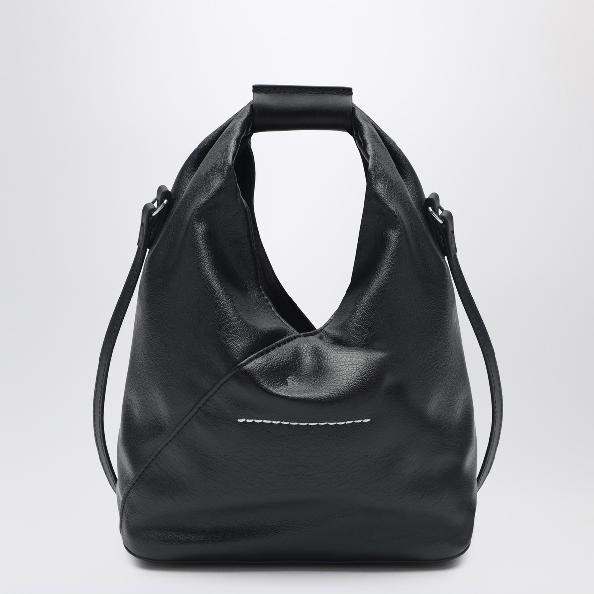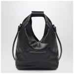 MM6 Maison Margiela small bag in black faux leather, featuring a handle with MM6 Numeric Signature, magnetic closure, White Stitch line on the back and adjustable shoulder strap.