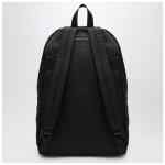 MM6 Maison Margiela black nylon backpack, featuring adjustable shoulder straps, a front zip pocket with Numeric Signature patch, zip closure, White Stitch Line on the back, an additional front zip pocket, and silver-tone metal hardware.
