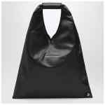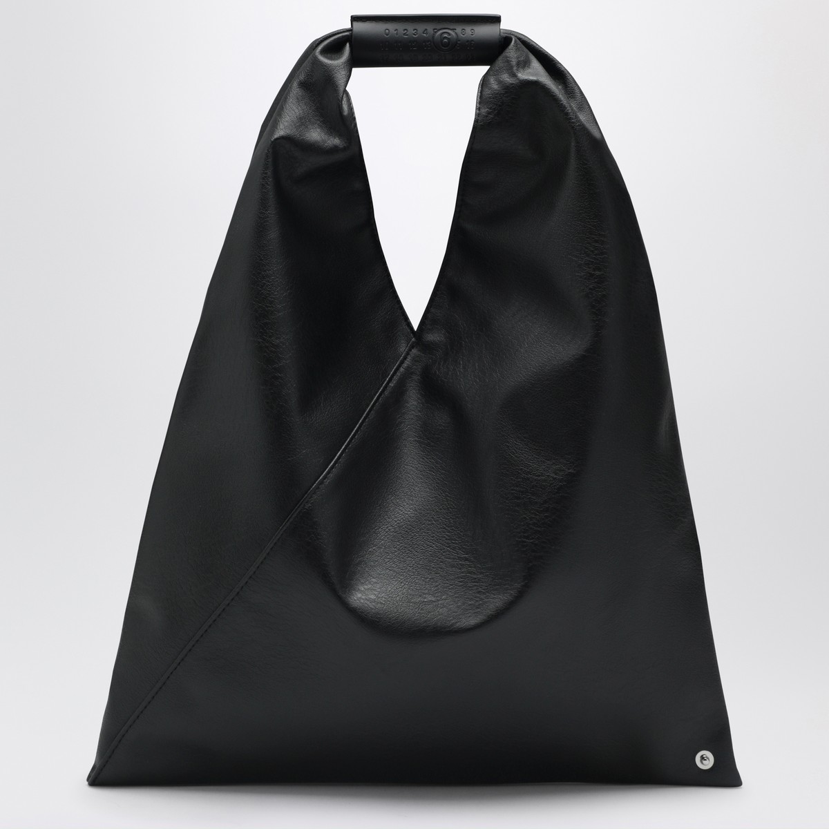 MM6 Maison Margiela small handbag in black faux leather, featuring a handle with MM6 Numeric Signature in leather, button closure, White Stitch line on the back and two snap buttons on the edge.