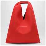 MM6 Maison Margiela small top-handle bag in orange mesh, featuring a leather handle with MM6 numeric signature, button closure, white stitch line on the back, two snap buttons on the edge, and an internal buttoned pocket.
