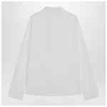 White cotton shirt by MM6 Maison Margiela, featuring long sleeves, front button closure, pointed collar, raw-cut cuffs and hem, tone-on-tone Numeric logo on the front, and White Stitch Line on the back.