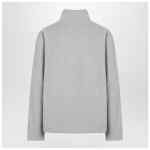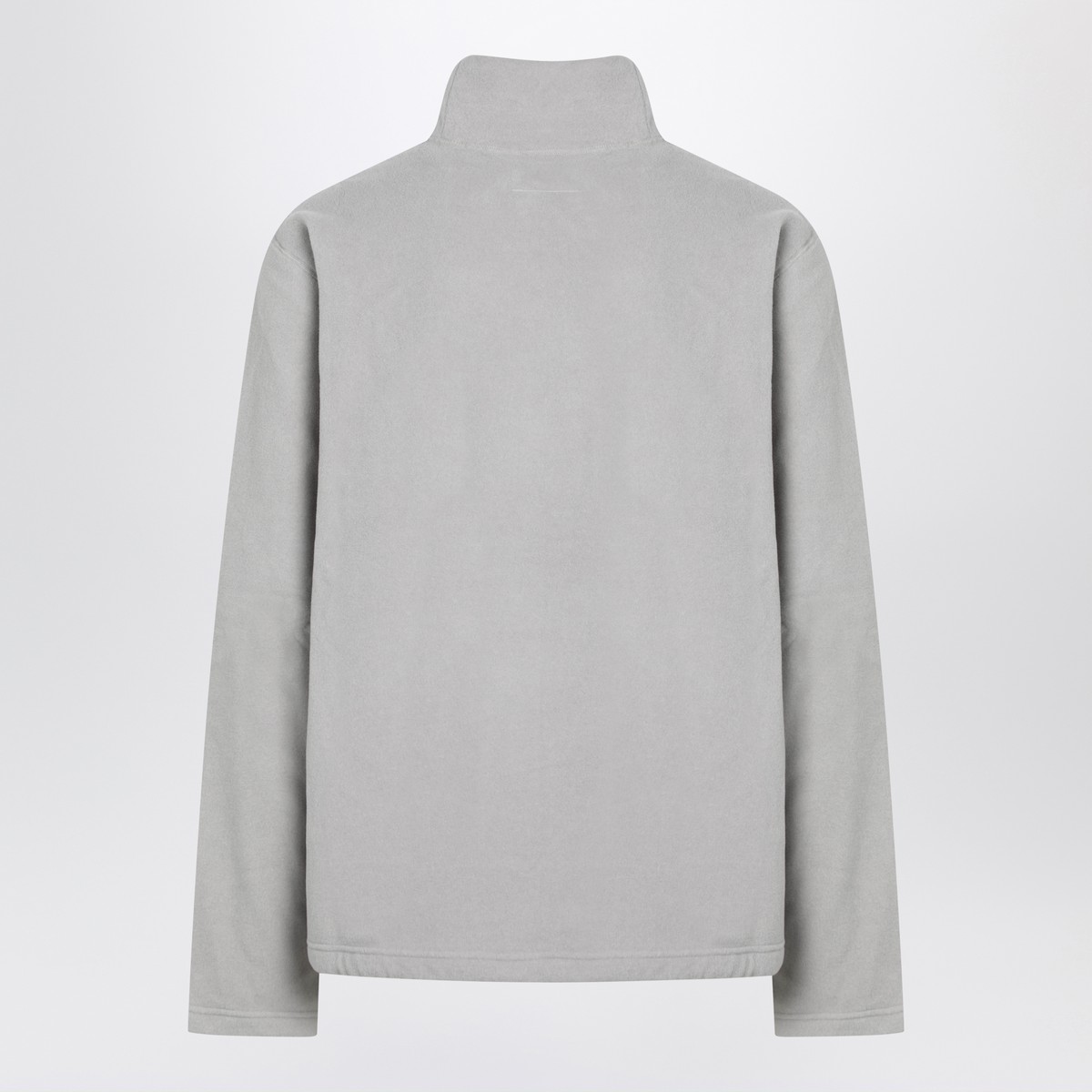 Light gray fleece by MM6 Maison Margiela created in collaboration with Salomon, featuring long sleeves, high collar, tonal stitching, tonal embroidered Numeric logo on the front, and White Stitch Line on the back.