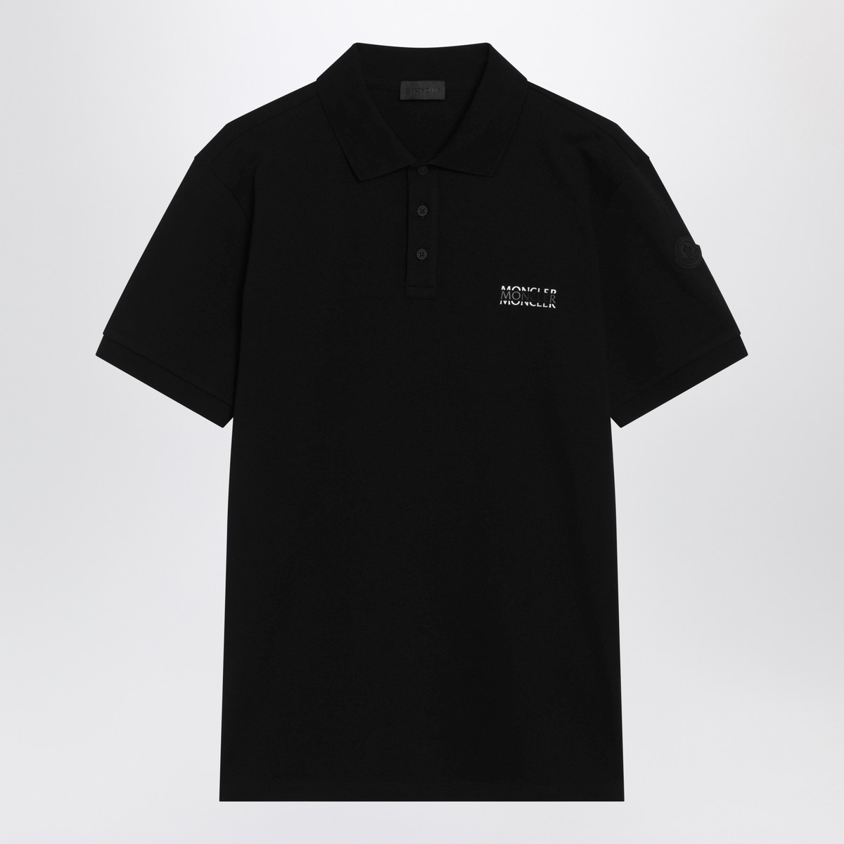 Moncler black cotton polo shirt, featuring a collar, button fastening, short sleeves and printed logo on the chest.