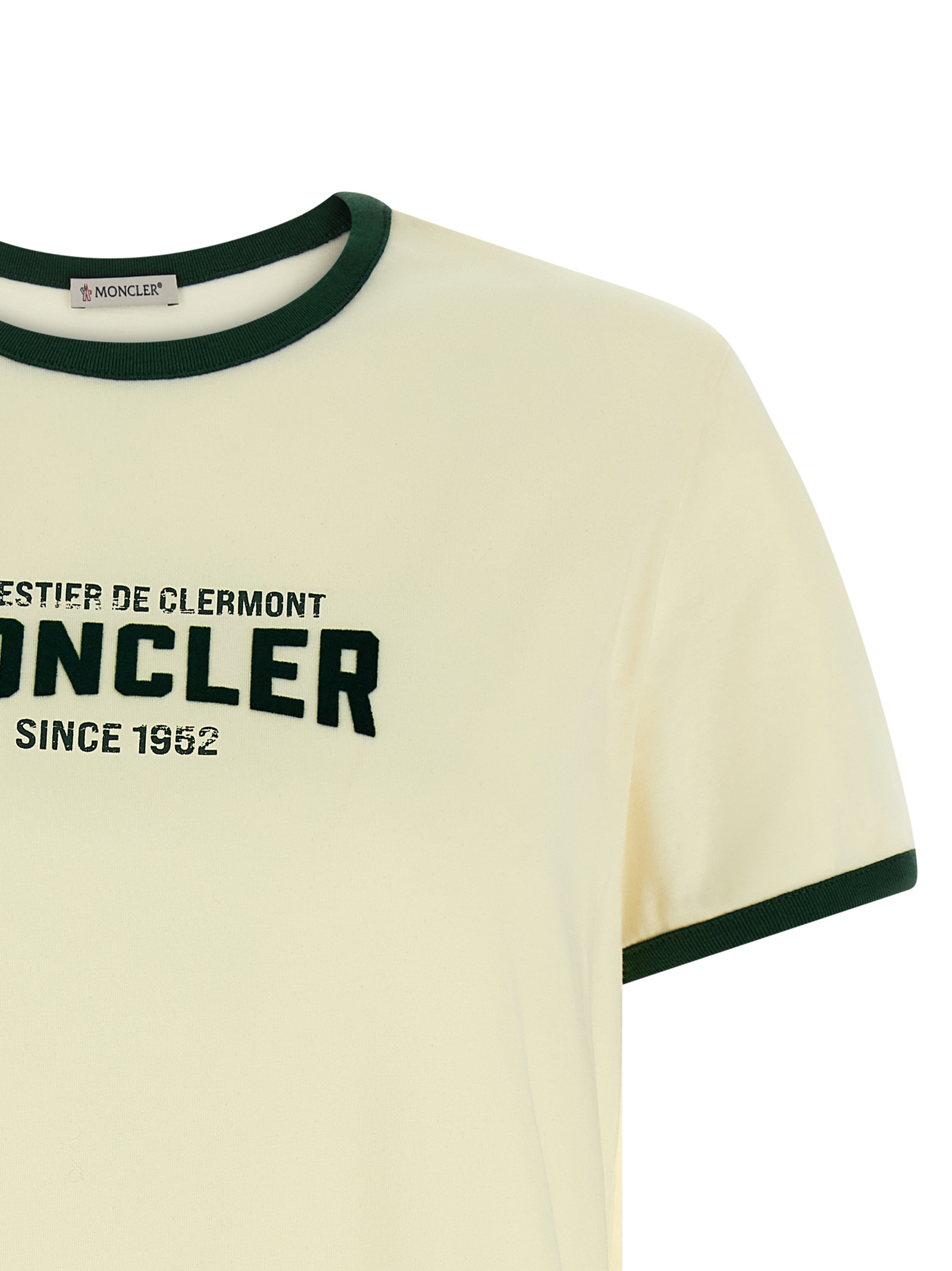 Cotton jersey t-shirt with contrasting ribbed details, Water-based print with a lived-in effect and front flocked logo, Crew neck, Short sleeves with cuffs.