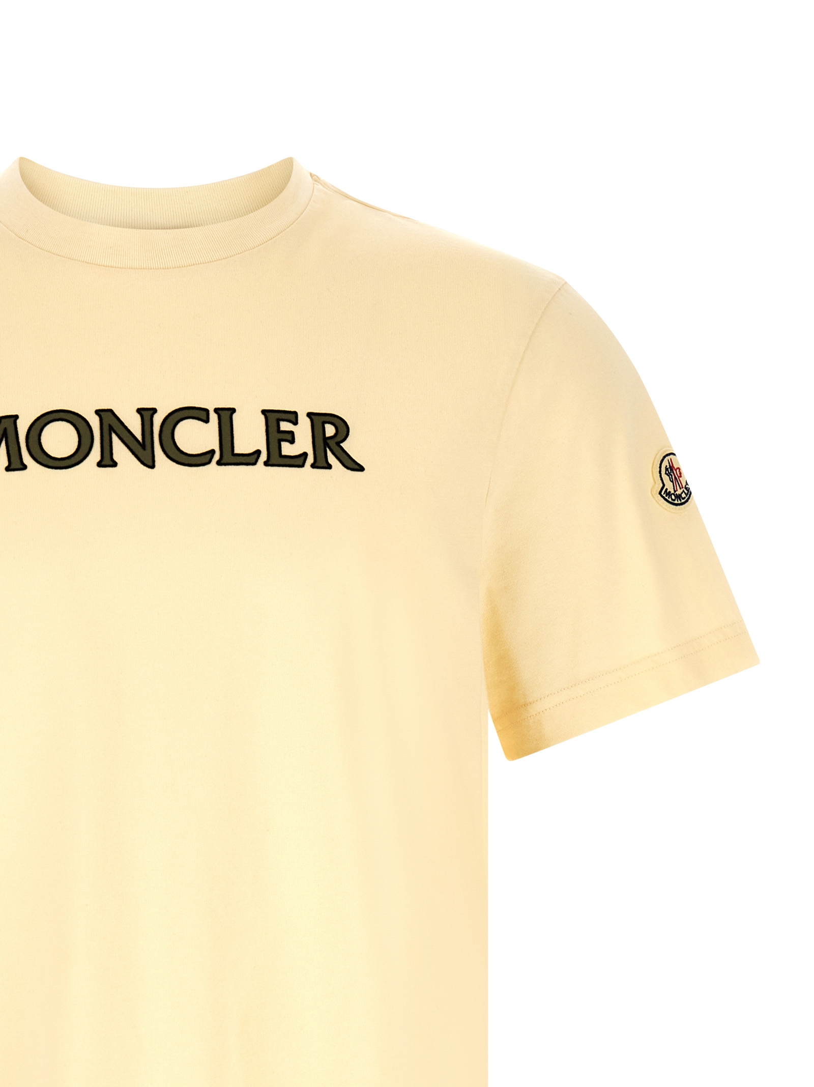 Cotton jersey t-shirt with front flocked logo, Crew neck, Short sleeves with felt logo patch appliqué.
