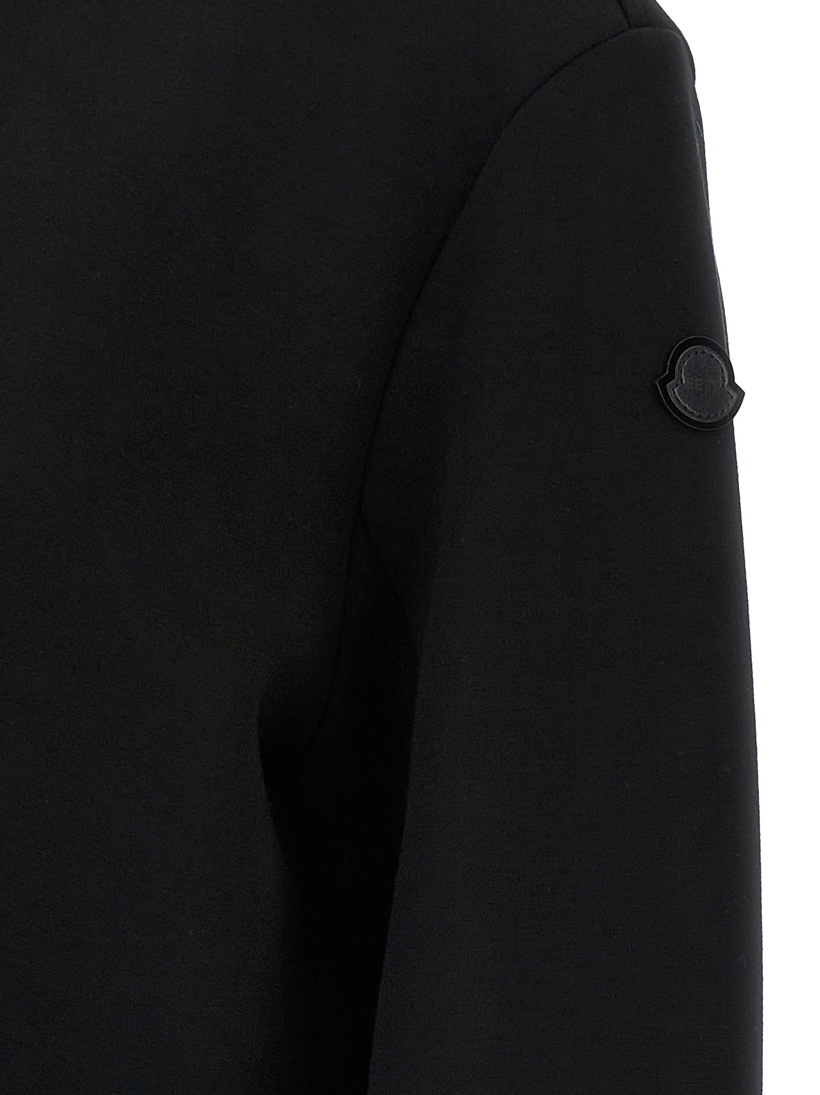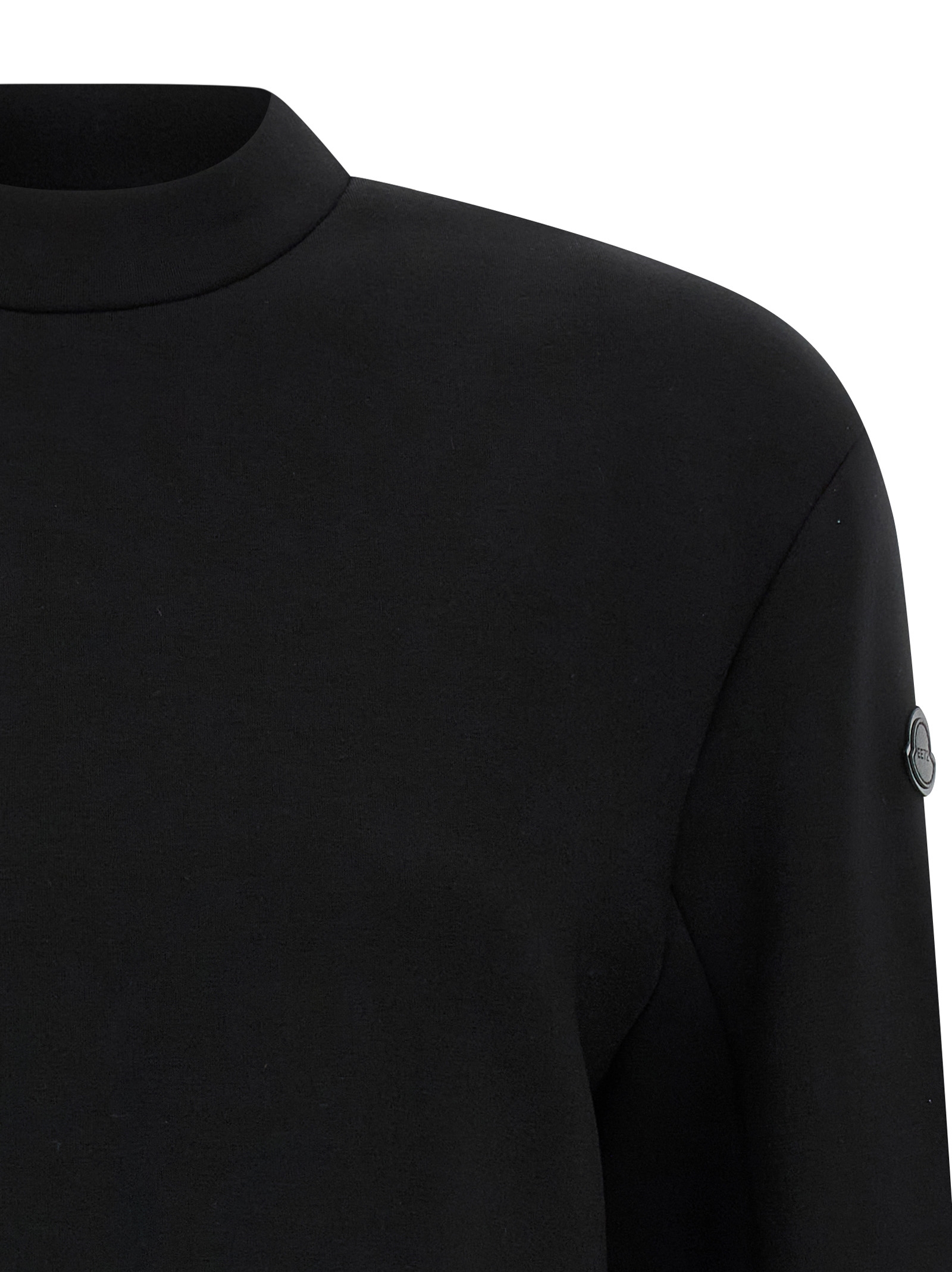 Moncler x Edward Enninful sweatshirt in scuba-effect fabric, crop model, high neck, long sleeves with cuffs and tone-on-tone logo patch applied, side slits, and asymmetrical hem.