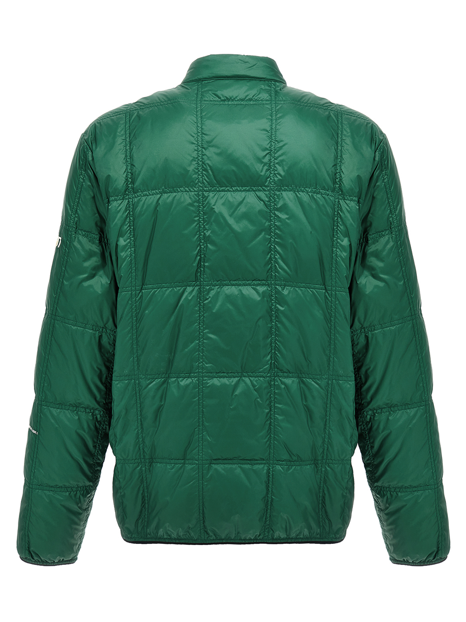 Moncler x FRGMT ‘Jayel’ down jacket in quilted saison longue slightly padded with feather, snap button closure, high neck, long sleeves with embroidery, felt logo patch, elasticized foldable hem pockets._x000D_
