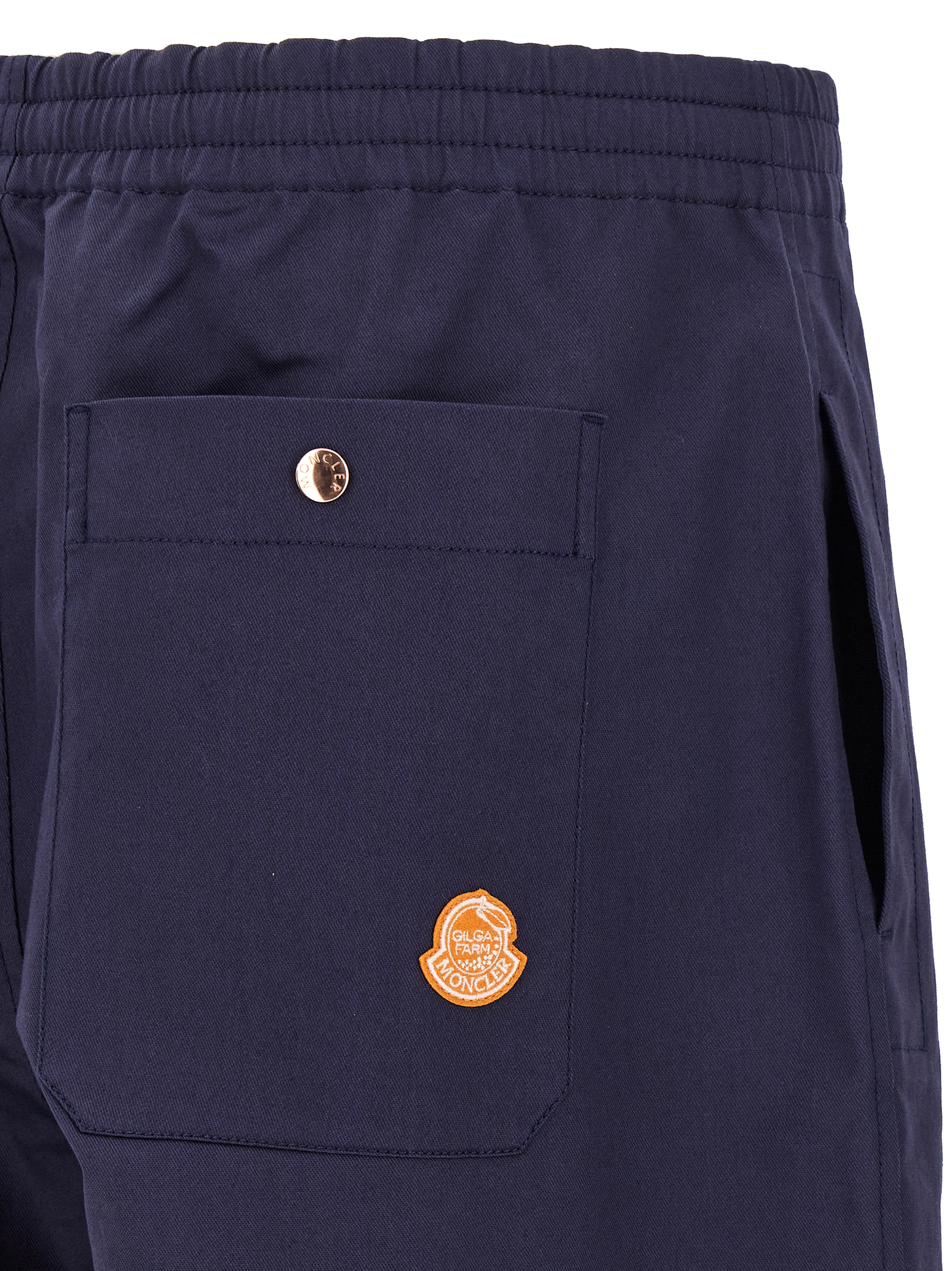 Moncler x Gilga Farm trousers by Donald Glover in cotton blend, back felt logo patch, wide and straight leg, adjustable drawstring elastic at the waist, zip and front button closure, pockets, ankle drawstring.