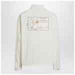 Shacket by Moncler Genius X Gilga Farm by Donald Glover made of white cotton and nylon canvas, characterized by two zip pockets, adjustable hem with drawstring, cartoon-style embroidery on the front and back, long sleeves with one featuring a logo patch and buttoned cuffs.