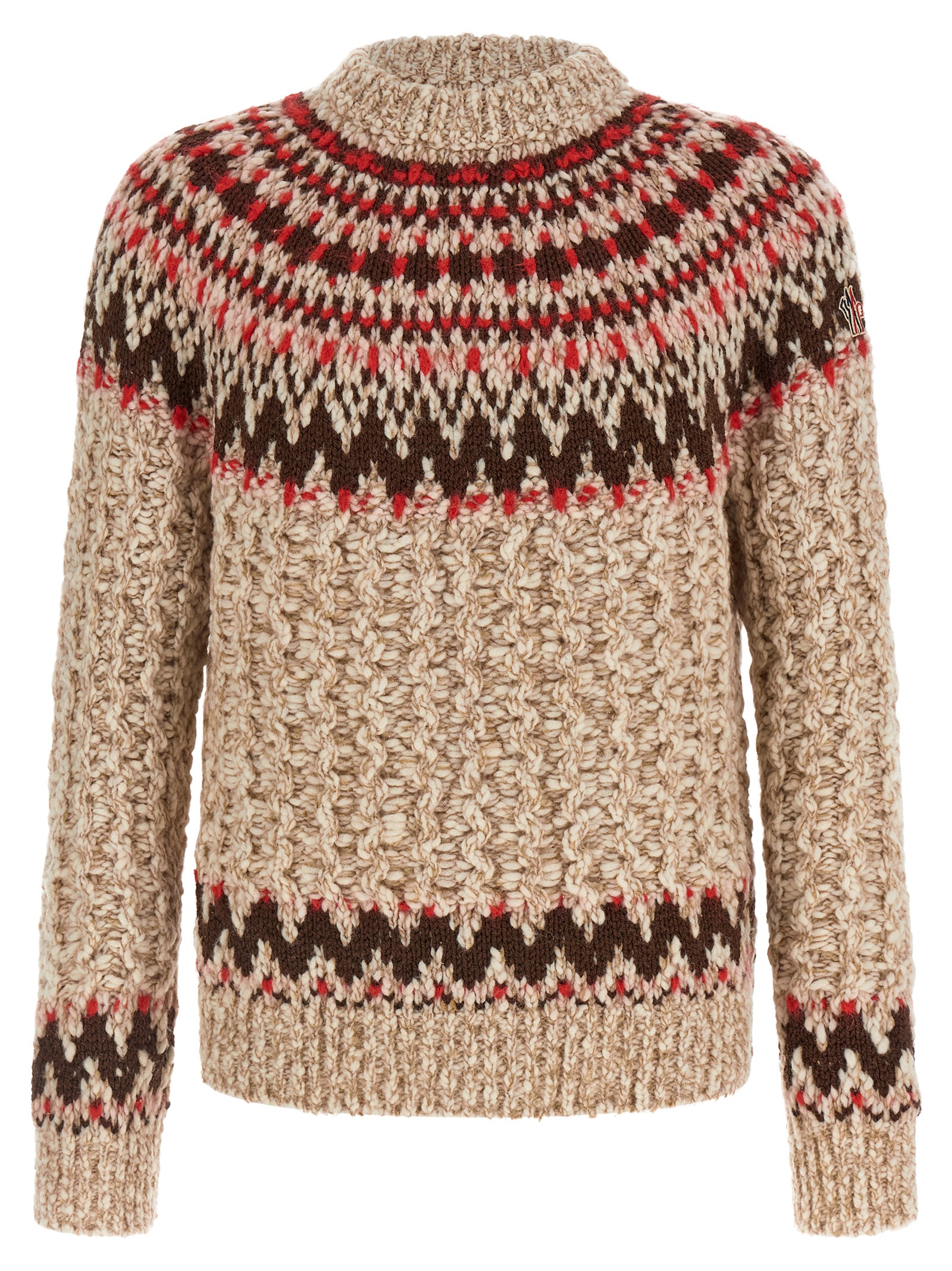 Knitted wool, alpaca and silk sweater with round neckline, long cuffed sleeves and logo patch appliqué.