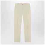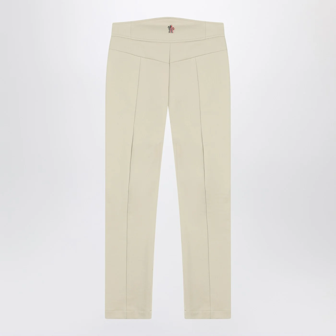 Moncler Grenoble slim-fit ski trousers in ivory technical fabric, featuring front zip and button closure, side zip pockets, and rear logo patch.