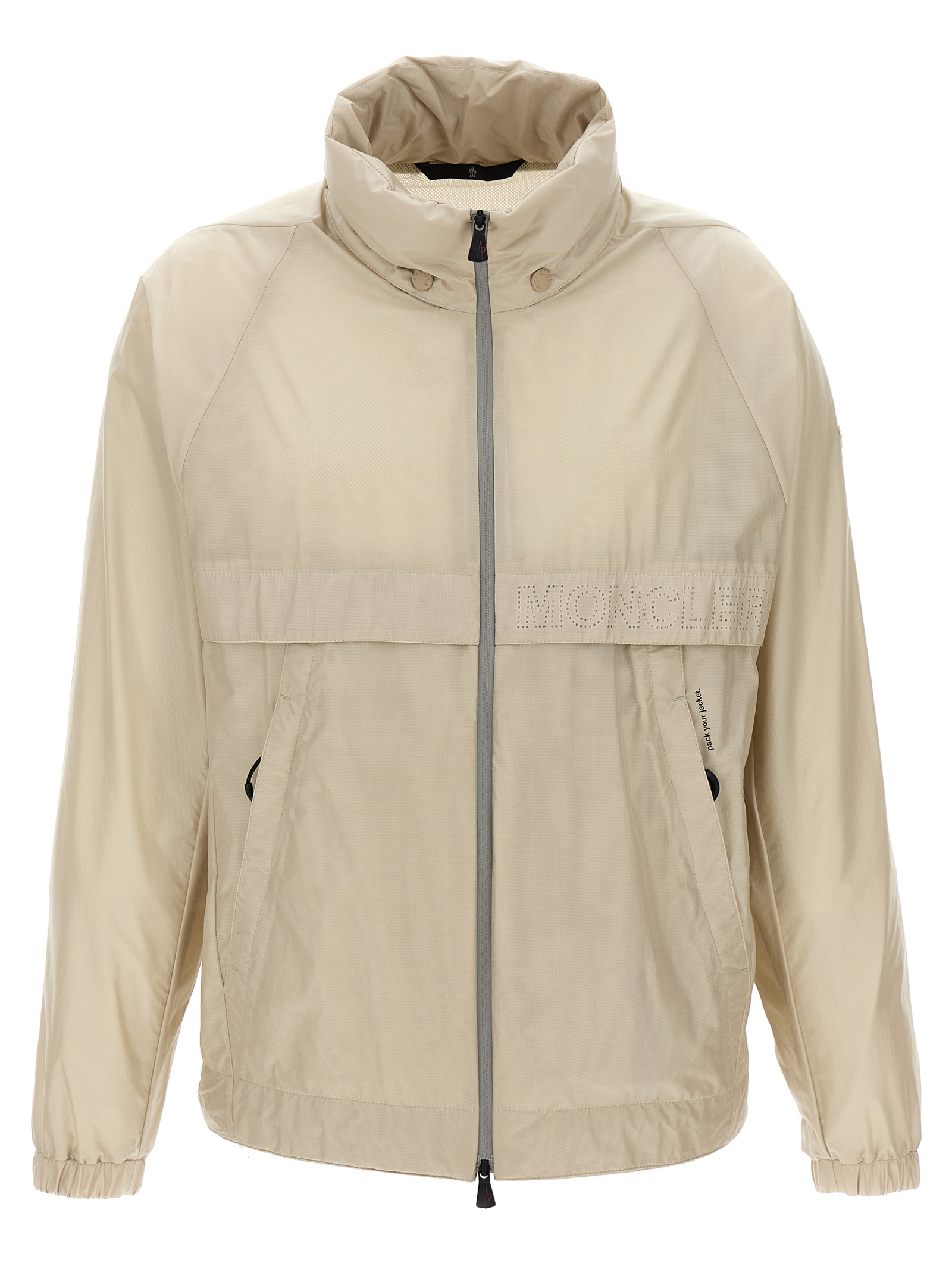 ‘Negara’ water-repellent micro ripstop windbreaker with micromesh lining, high neck with removable hood, zip closure, pockets, long sleeves with elastic cuffs, logo patch and perforated underarm detail, drawstring on the hem, foldable.