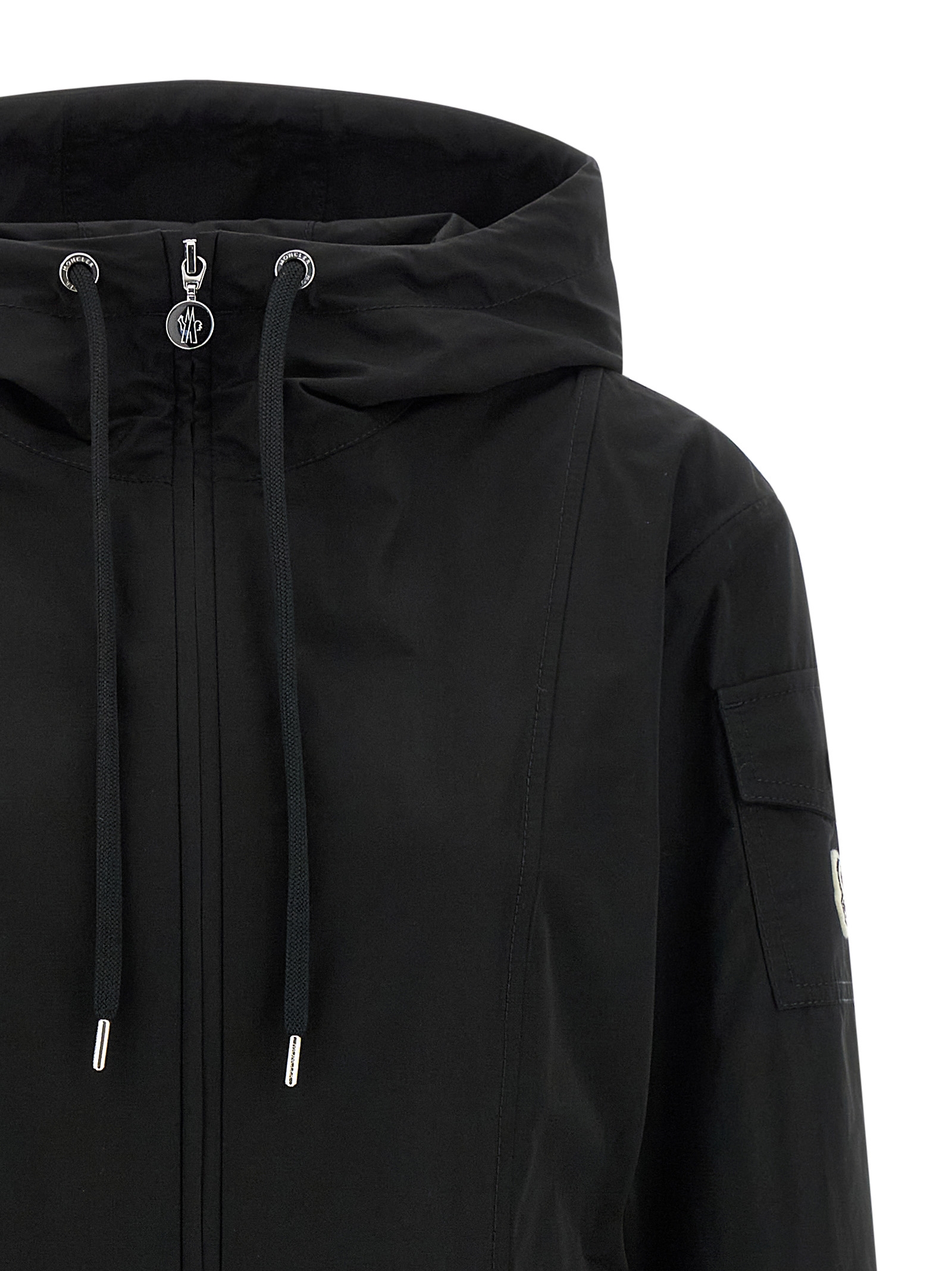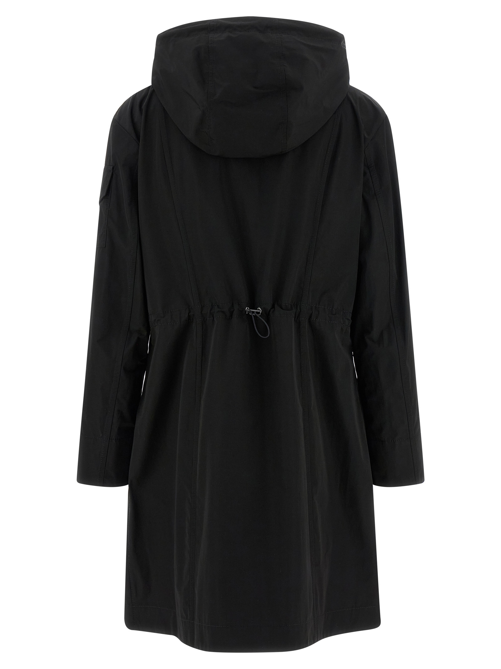 Long ‘laerte’ parka in water-repellent technical fabric, Unlined, Hourglass silhouette, Adjustable hood, High neck, Front zip closure, Drawstring at the waist, Pockets, Long sleeves with felt logo patch applied.