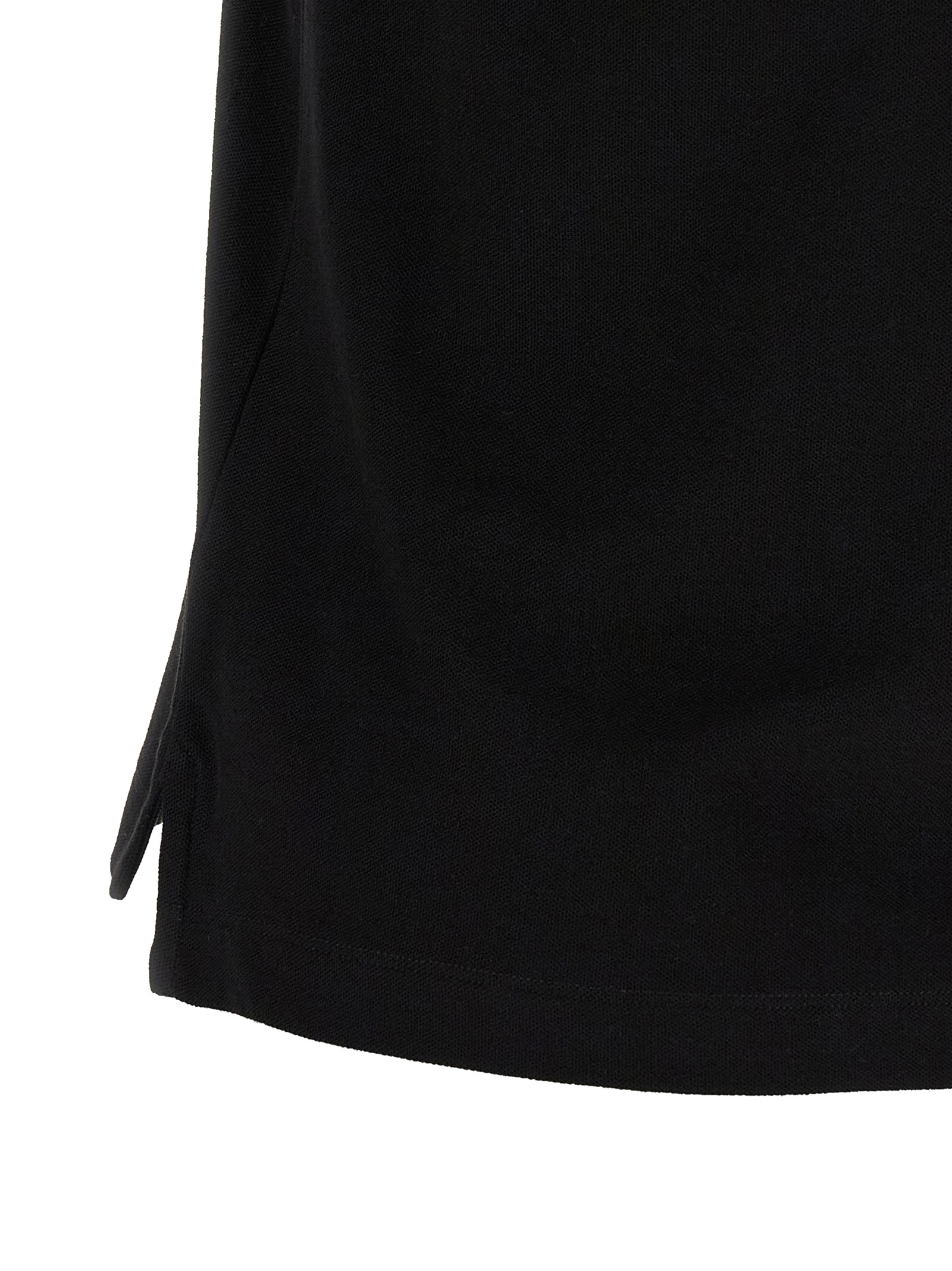 Cotton piquet polo shirt with contrasting details, Front felt logo patch, Snap buttons and collar, Short cuffed sleeves, Side slits, And asymmetrical hem.