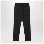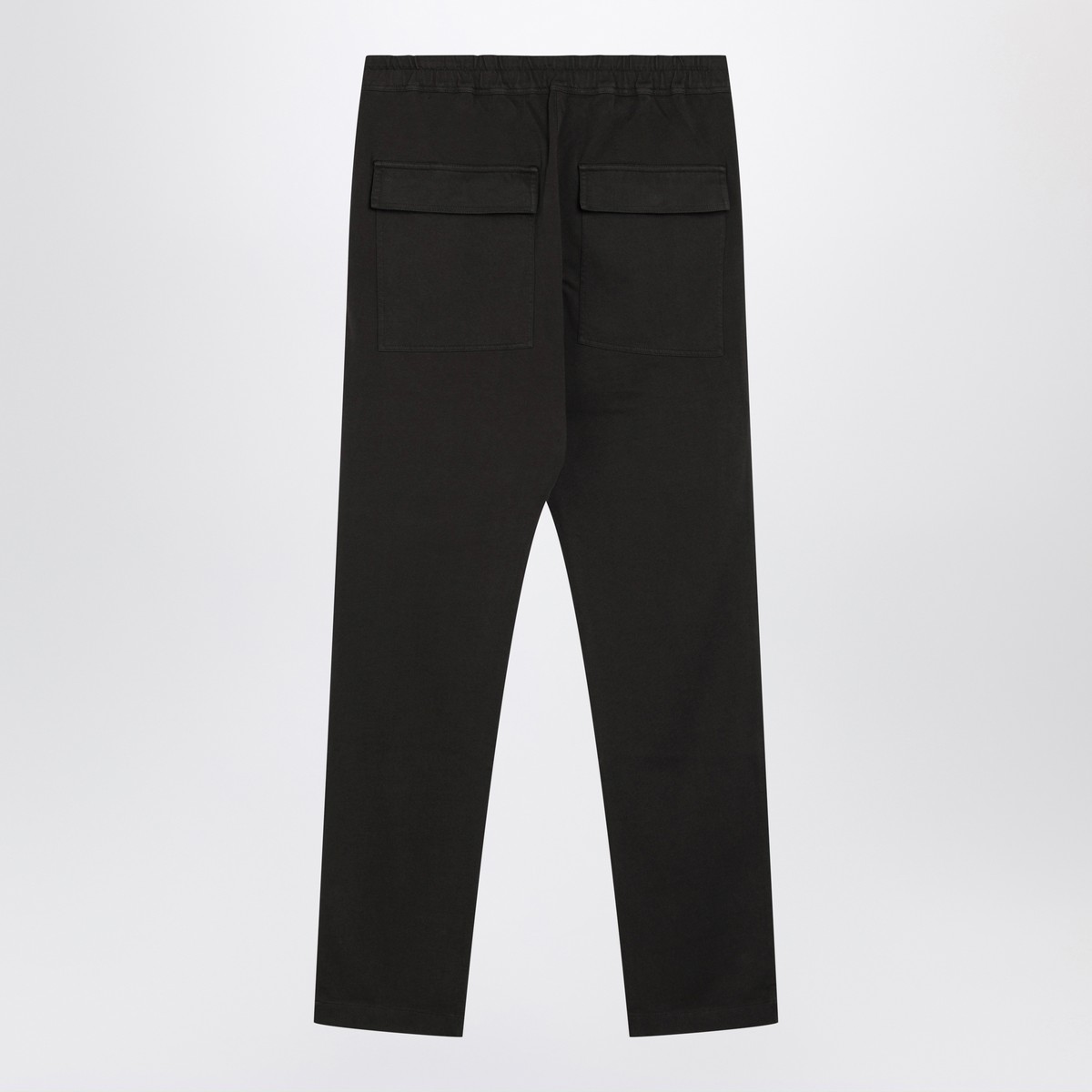 Rick Owens jogging trousers created in collaboration with Moncler in black cotton, featuring an elasticated waistband with drawstring, two side pockets, contrasting white topstitch embroidery, a logo patch on the front, and two rear patch pockets with flaps.